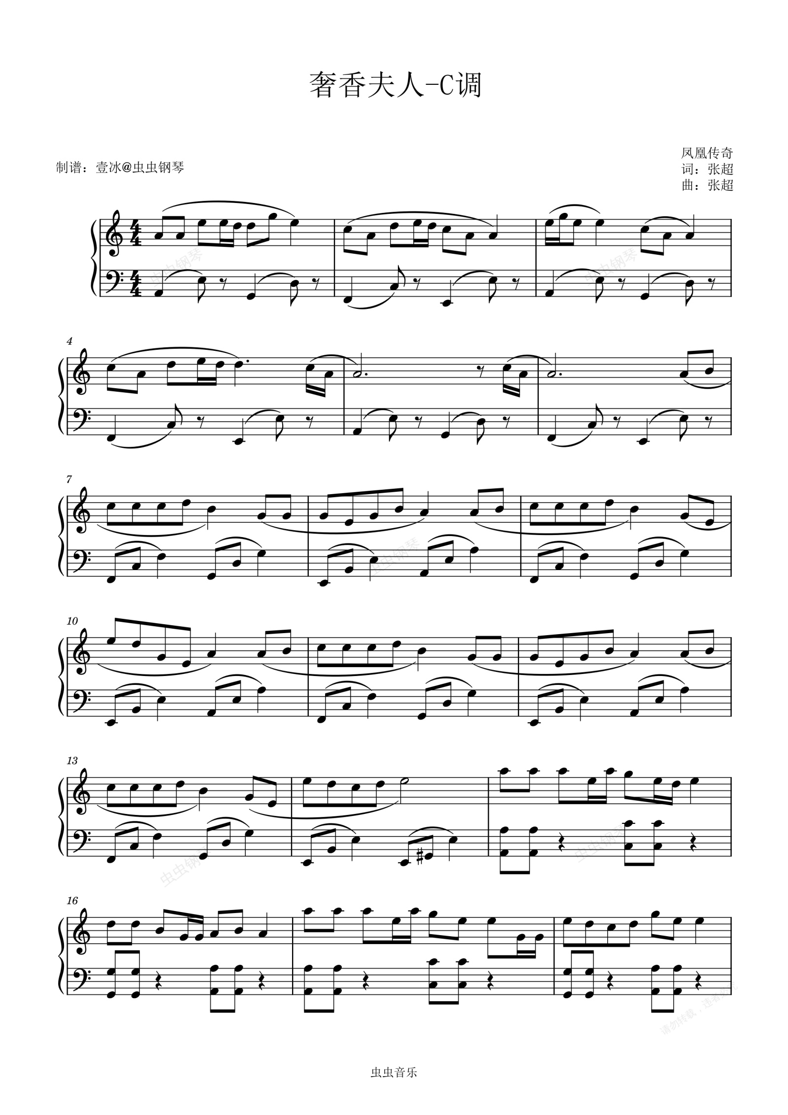 钢琴谱:奢香夫人//凤凰传奇 - C调 简单易上手