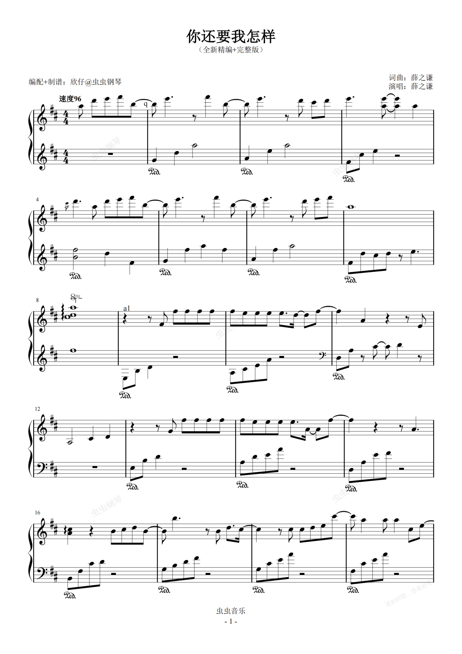 钢琴谱:薛之谦-D《你还要我怎样》(全新精编+完整版)