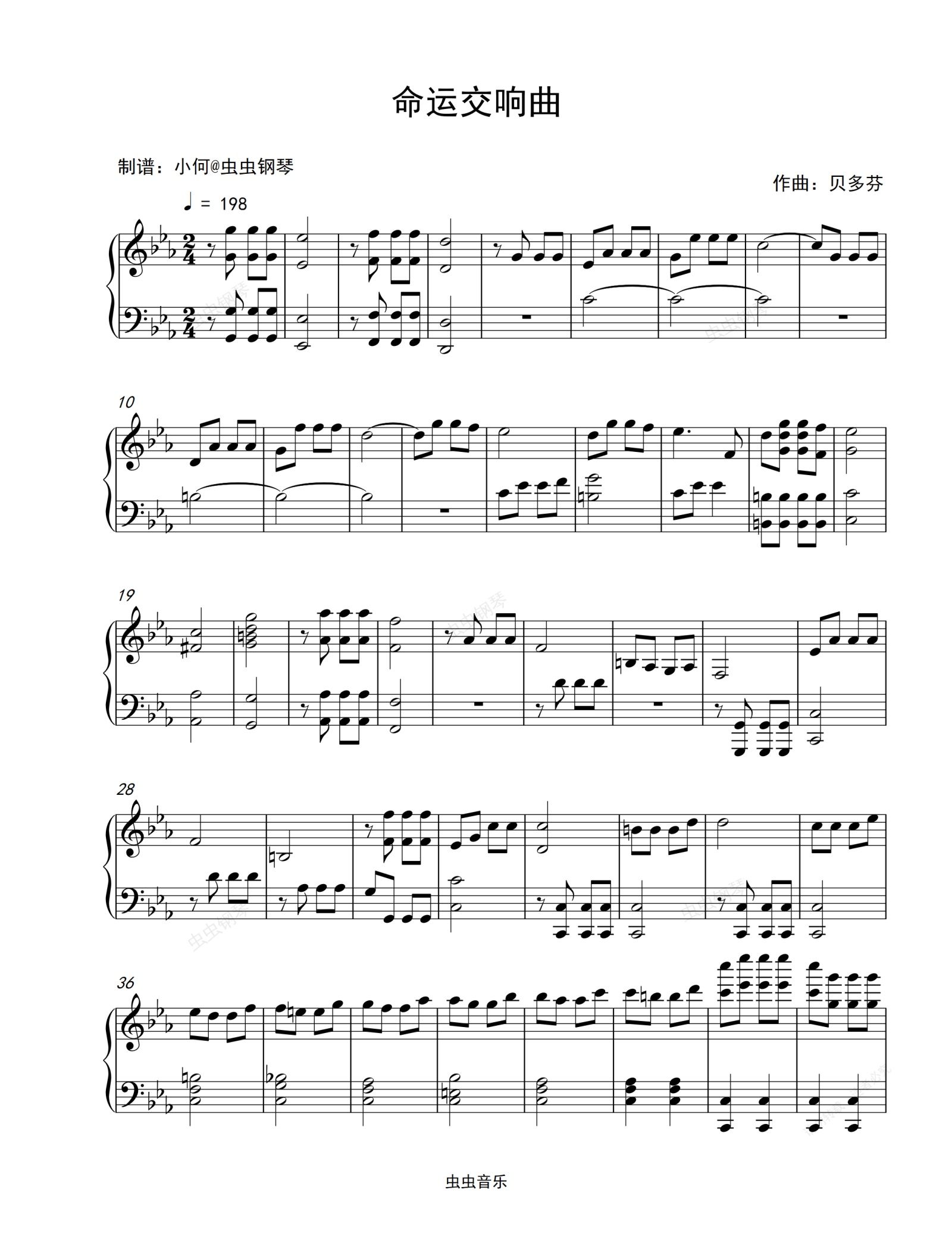 钢琴谱:命运交响曲-c小调第五交响曲-简单版-贝多芬