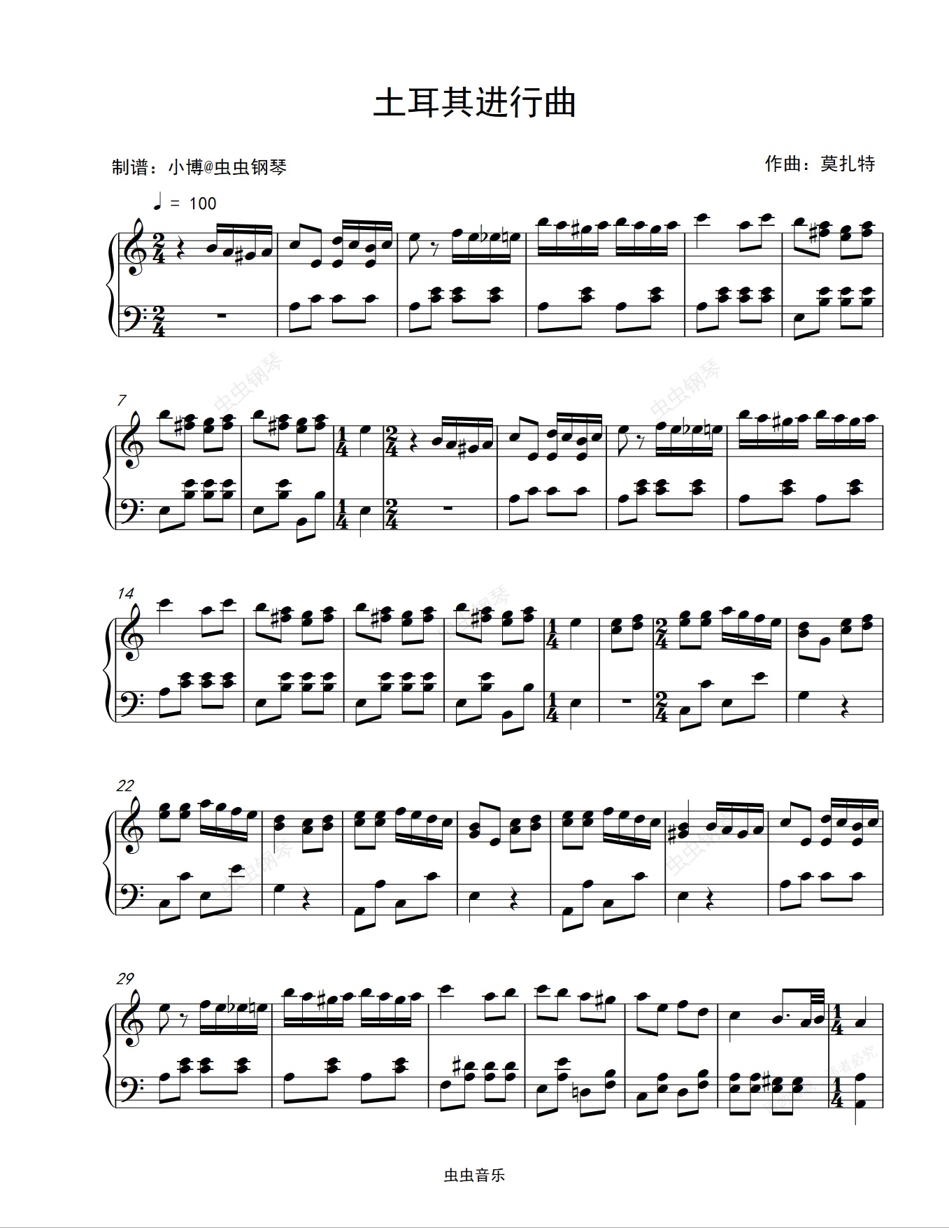 钢琴谱:土耳其进行曲-Turkish March-莫扎特