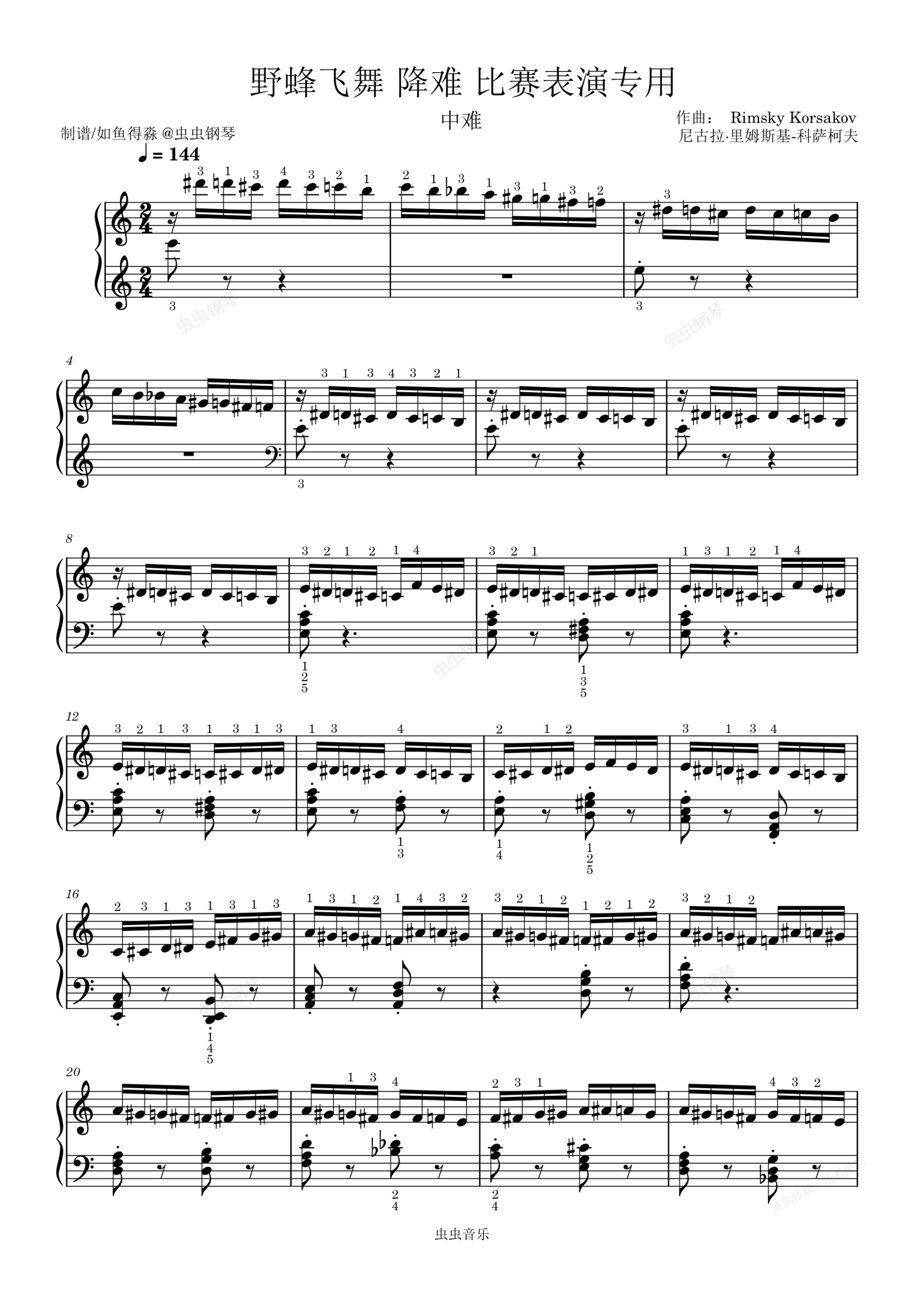 钢琴谱:野蜂飞舞 降难 比赛表演用
