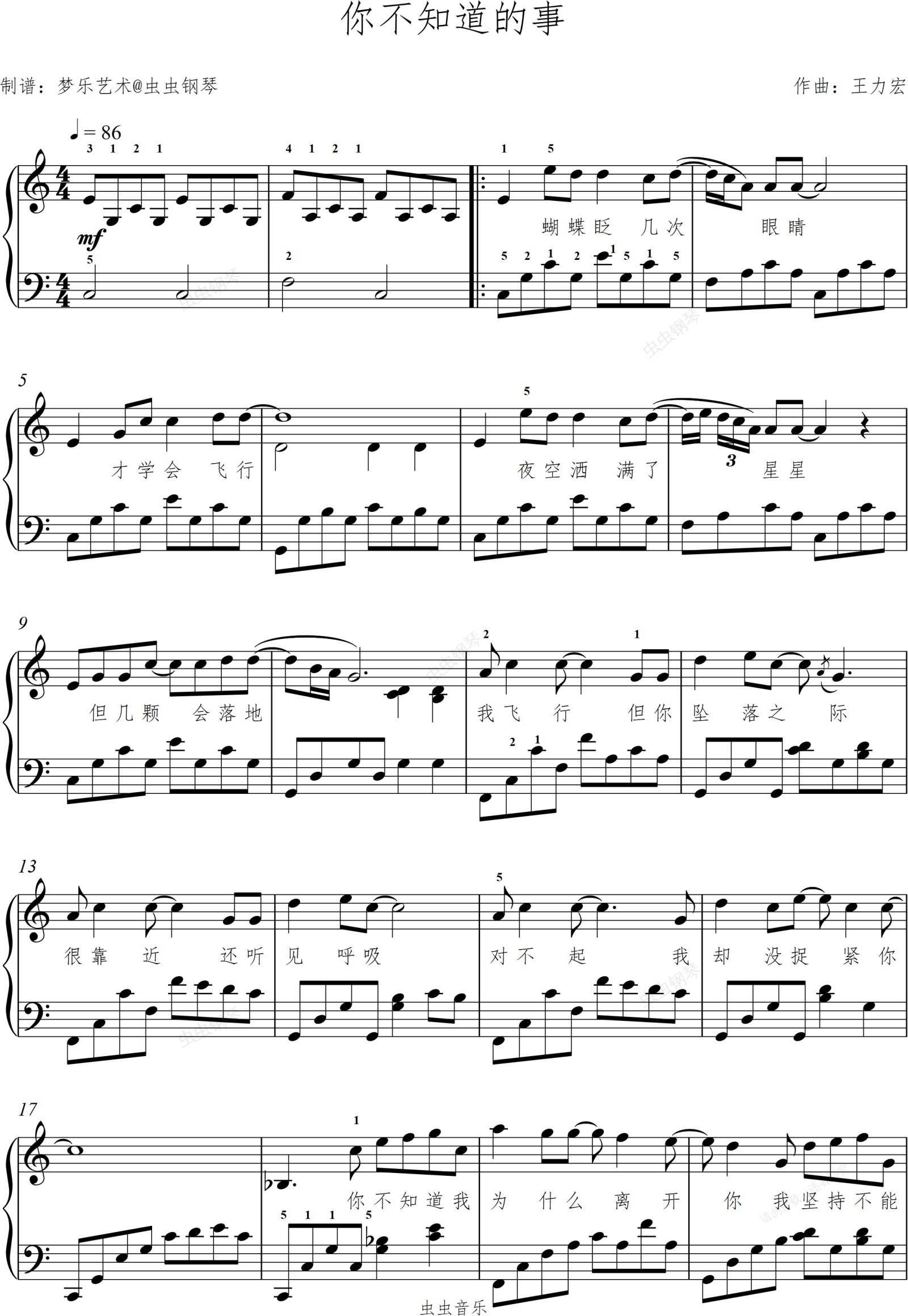 钢琴谱:你不知道的事 C调+指法+歌词 王力宏