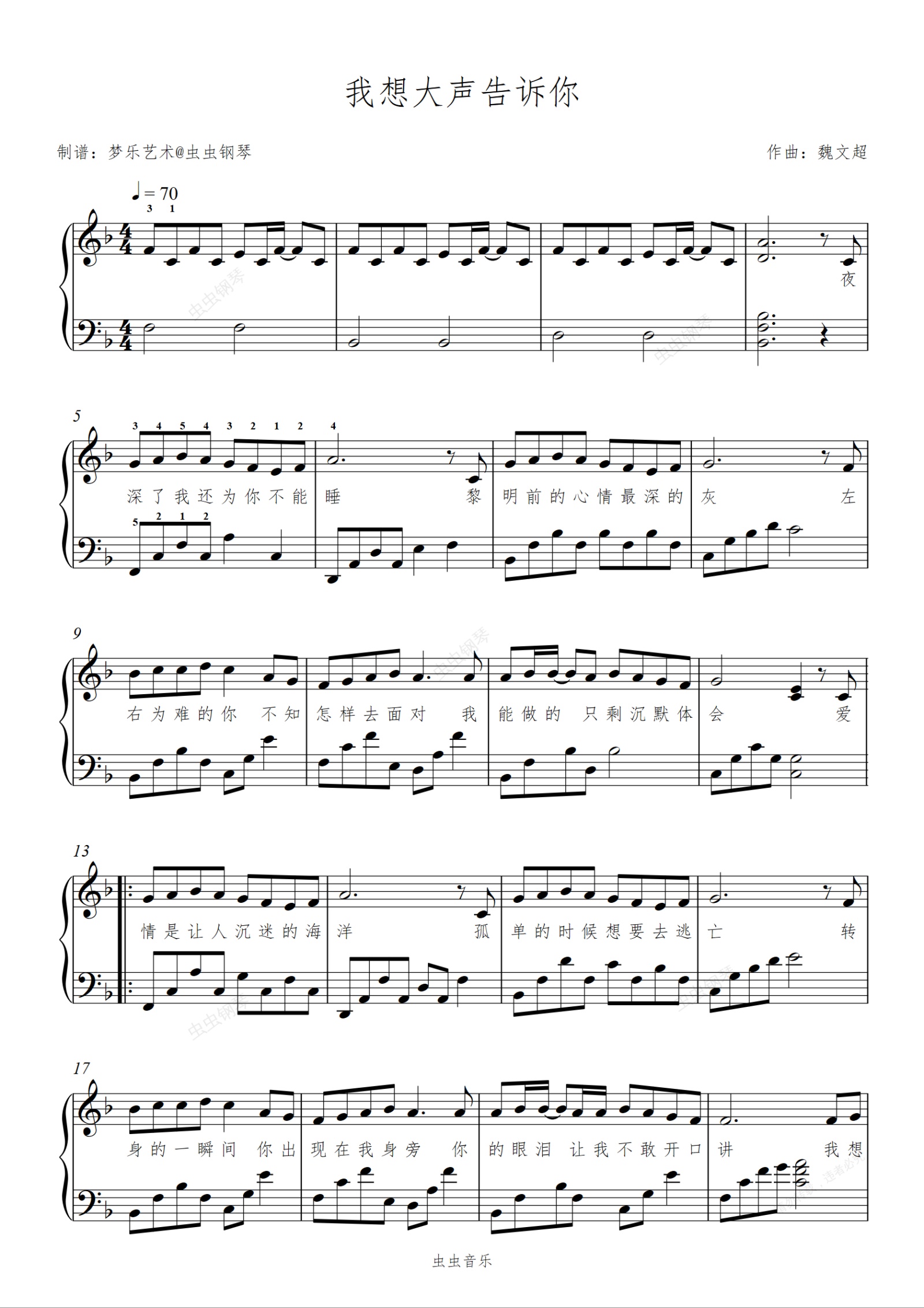 钢琴谱:我想大声告诉你 原调F/附歌词指法 樊凡
