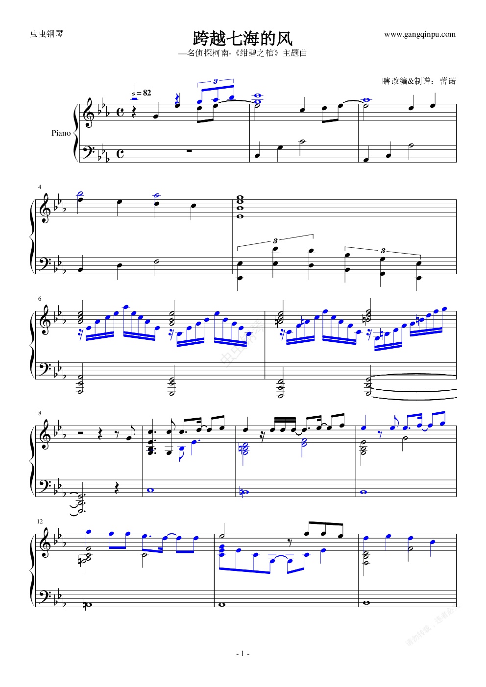 钢琴谱:柯南—跨越七海的风(完整瞎编版)