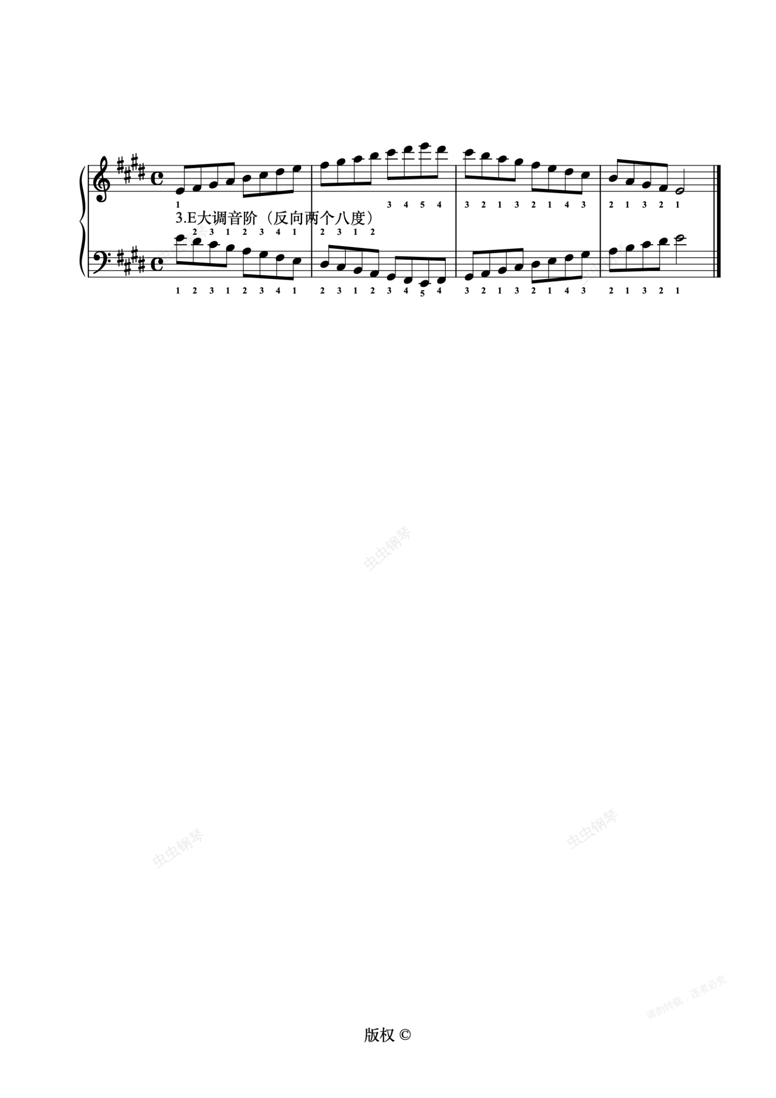 钢琴谱:15-1-3.E大调音阶(反向两个八度)