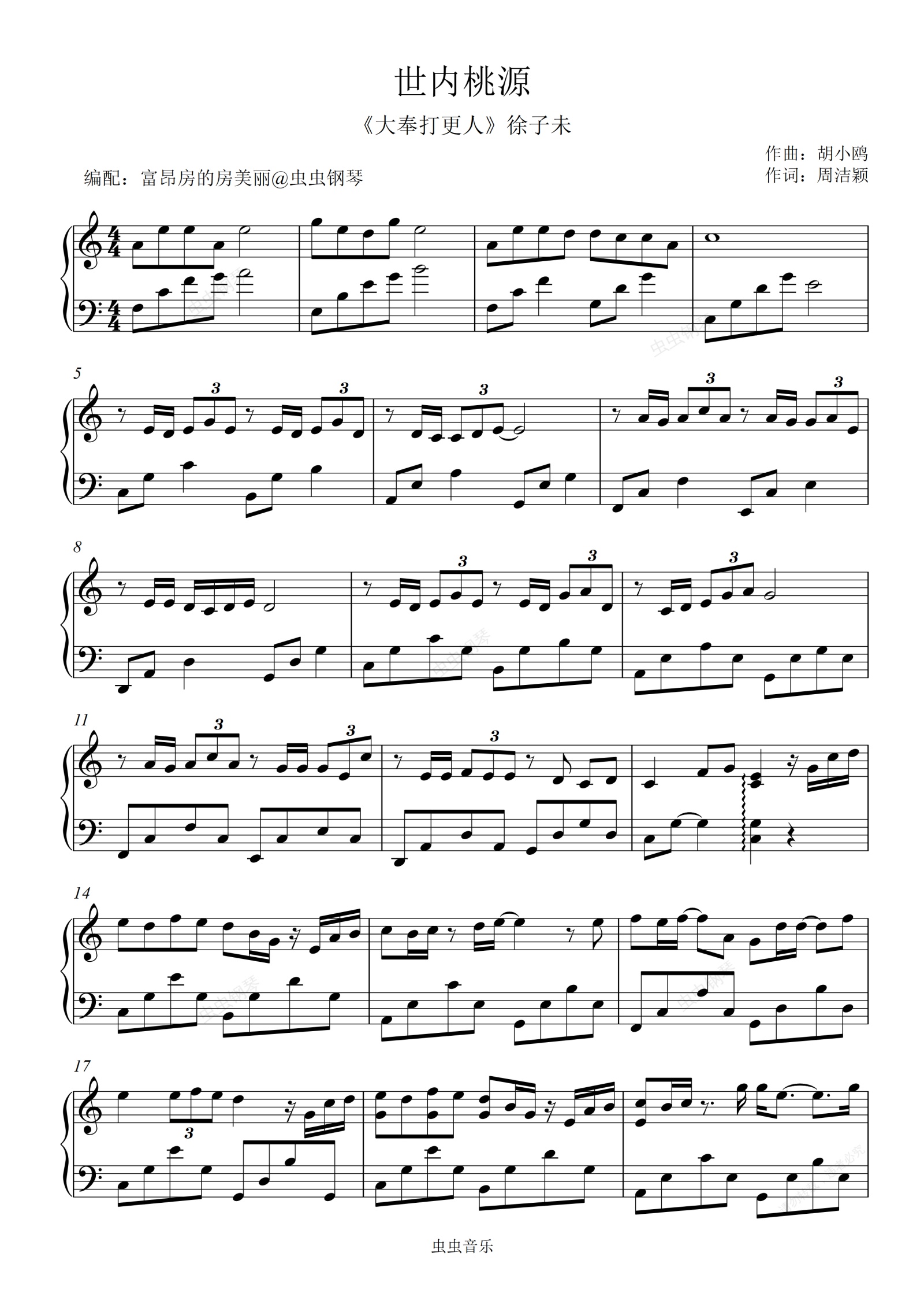 钢琴谱:世内桃源 C调 大奉打更人 易弹