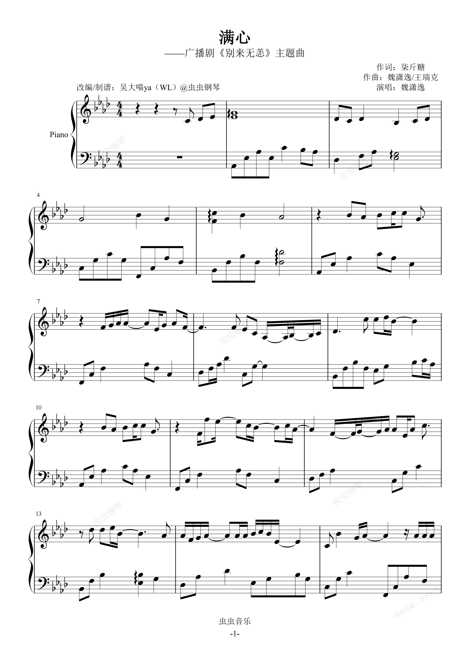 钢琴谱:满心-广播剧《别来无恙》主题曲 原调
