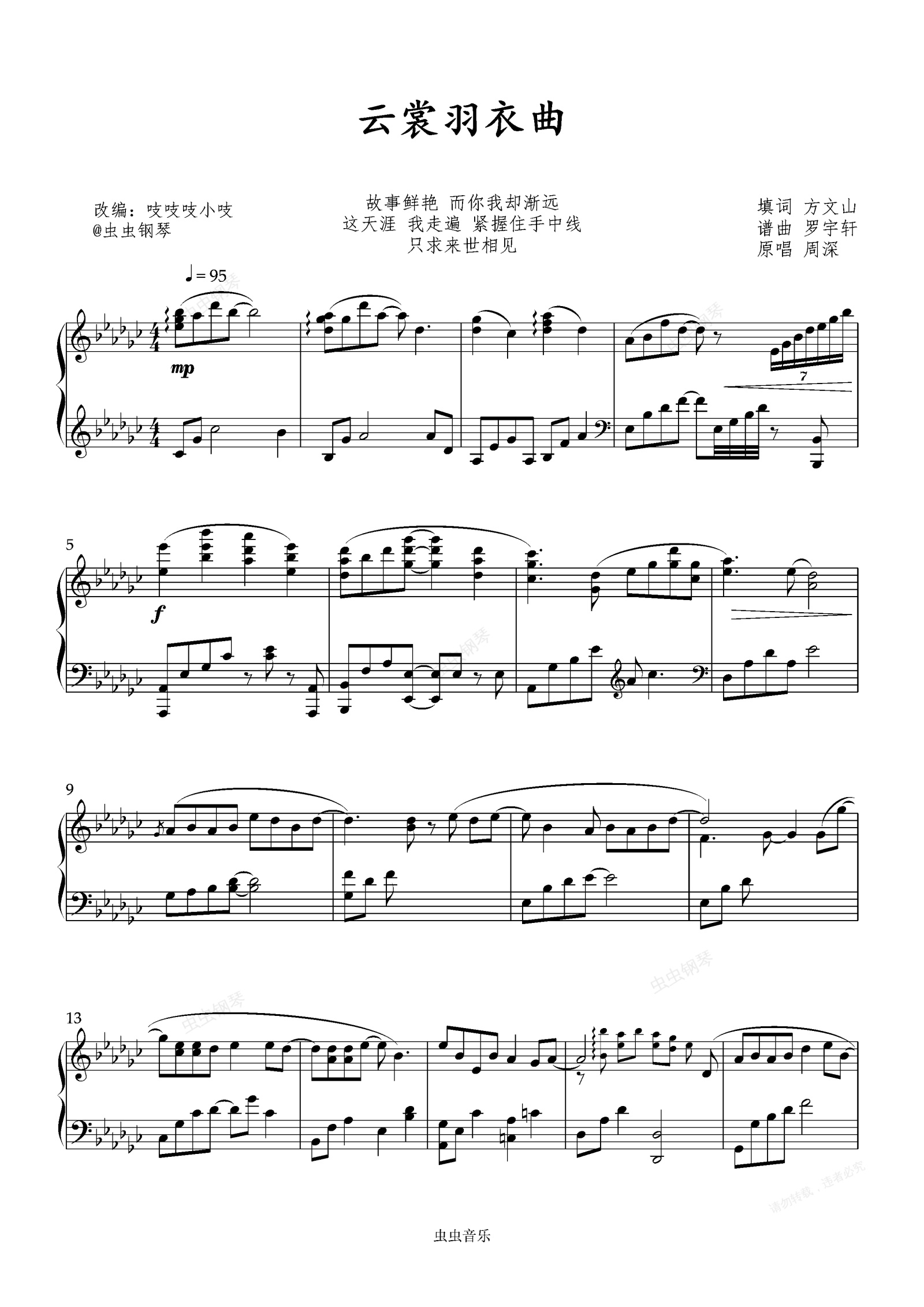 钢琴谱:云裳羽衣曲 「仙」 周深 原调演奏 吱吱改编