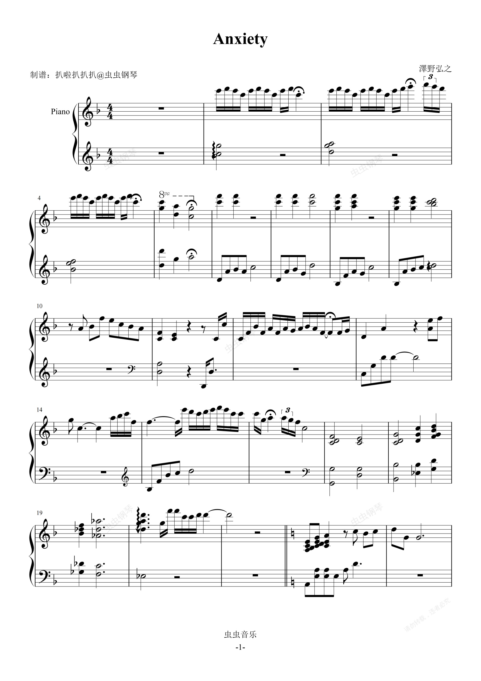钢琴谱:Anxiety-澤野弘之-钢琴演奏谱