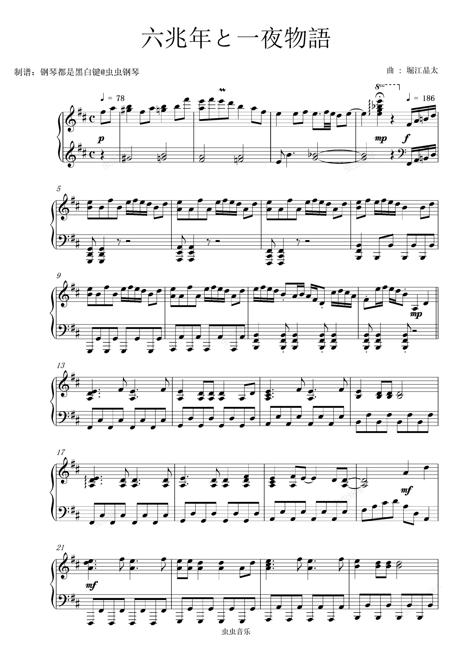 钢琴谱:【星乃一歌 × 初音ミク】六兆年と一夜物語(六兆年零一夜的故事)【『世界计划 多彩舞台』收录曲】