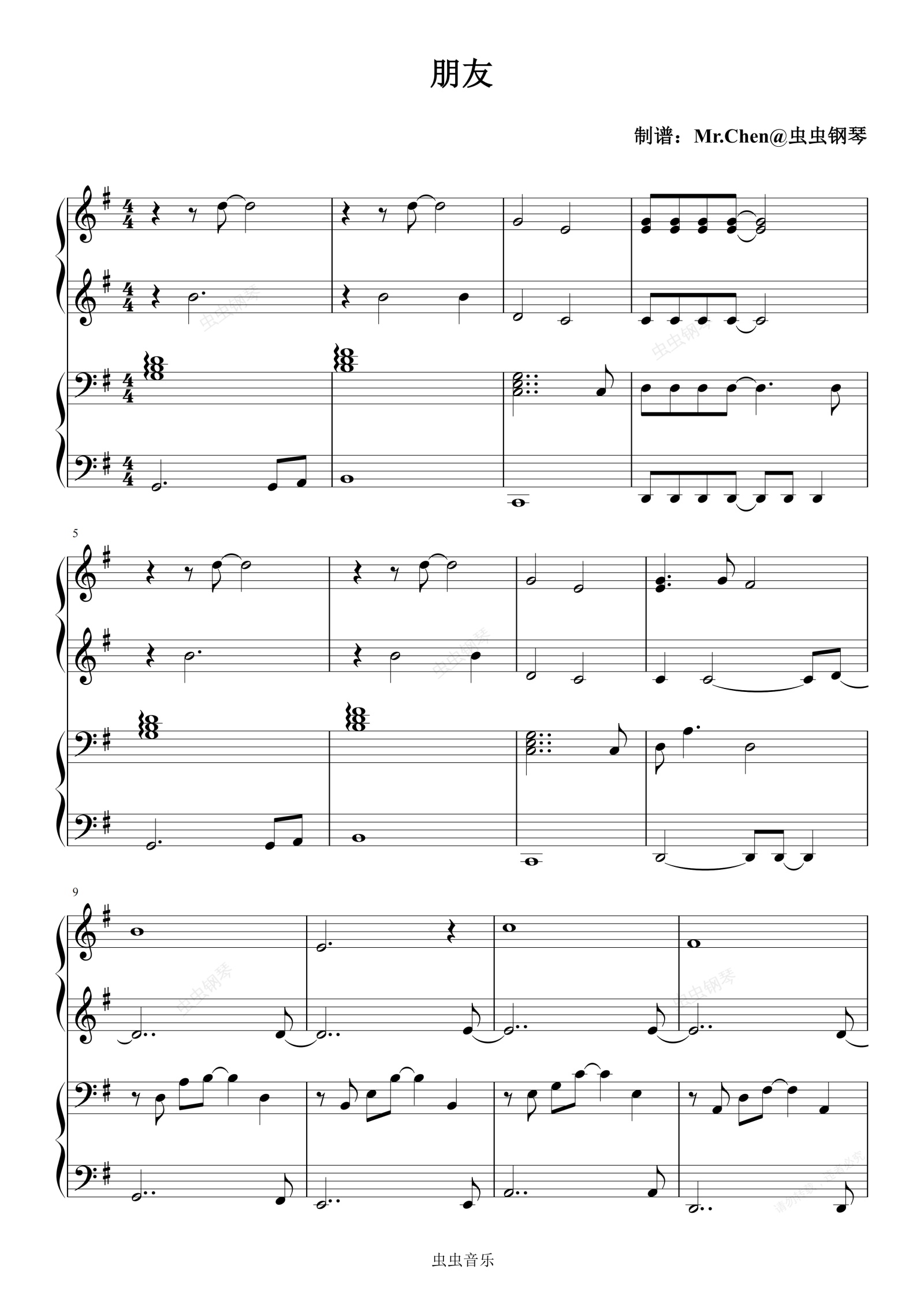 钢琴谱:朋友 (四手联弹)- 谭咏麟