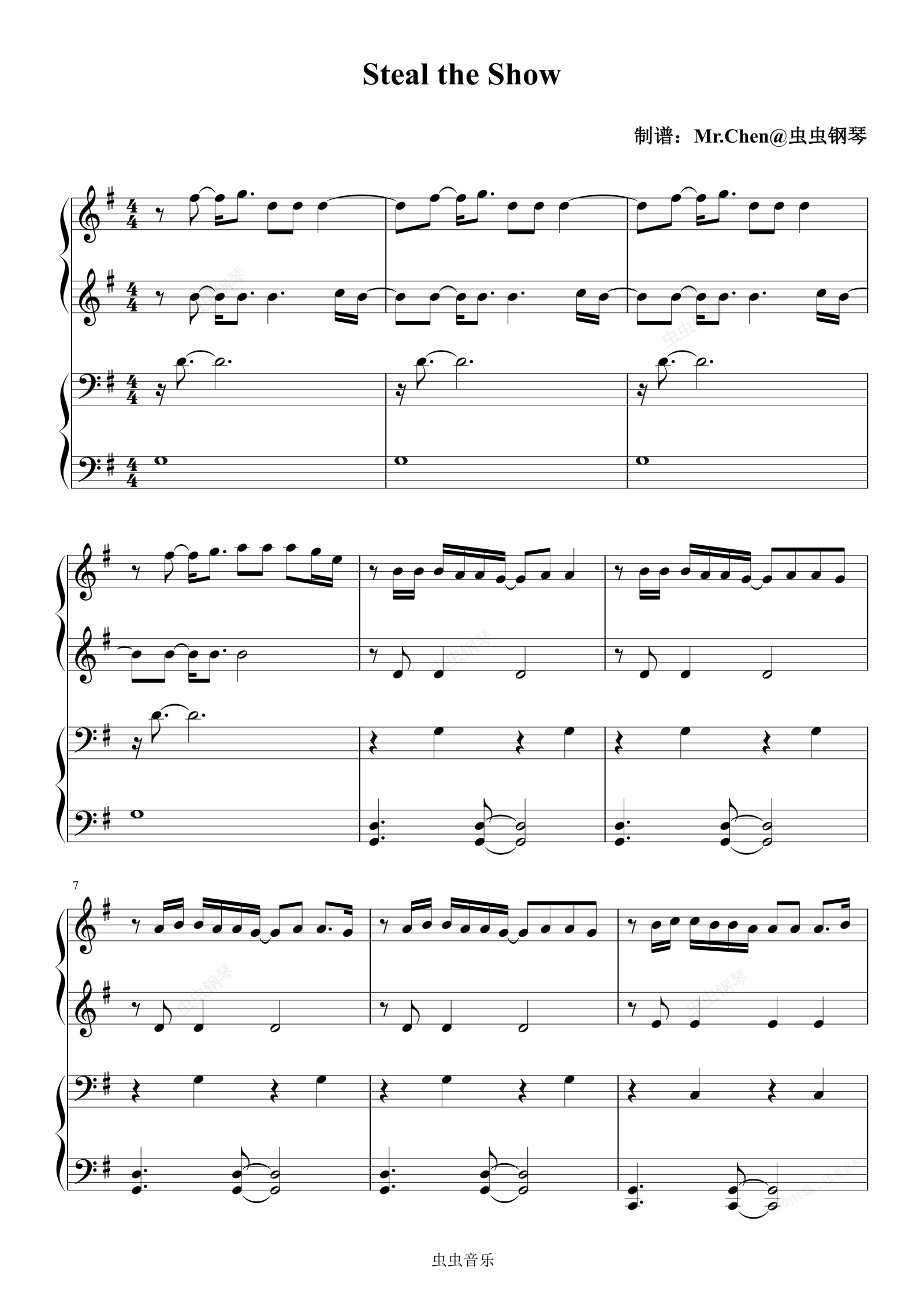 钢琴谱:Steal The Show (四手联弹)- 动画电影《疯狂元素城》主题曲