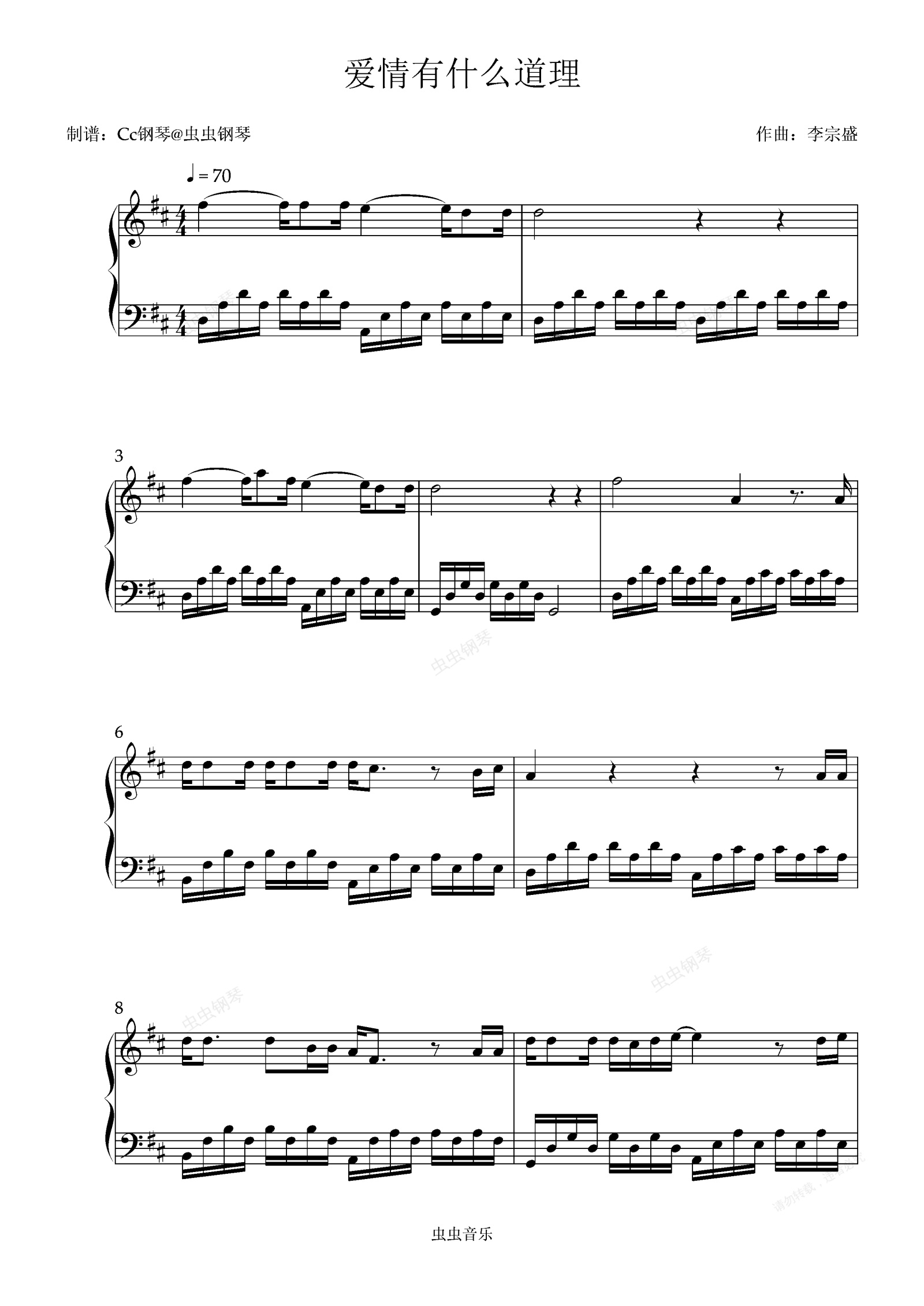 钢琴谱:爱情有什么道理 原调 好听易上手