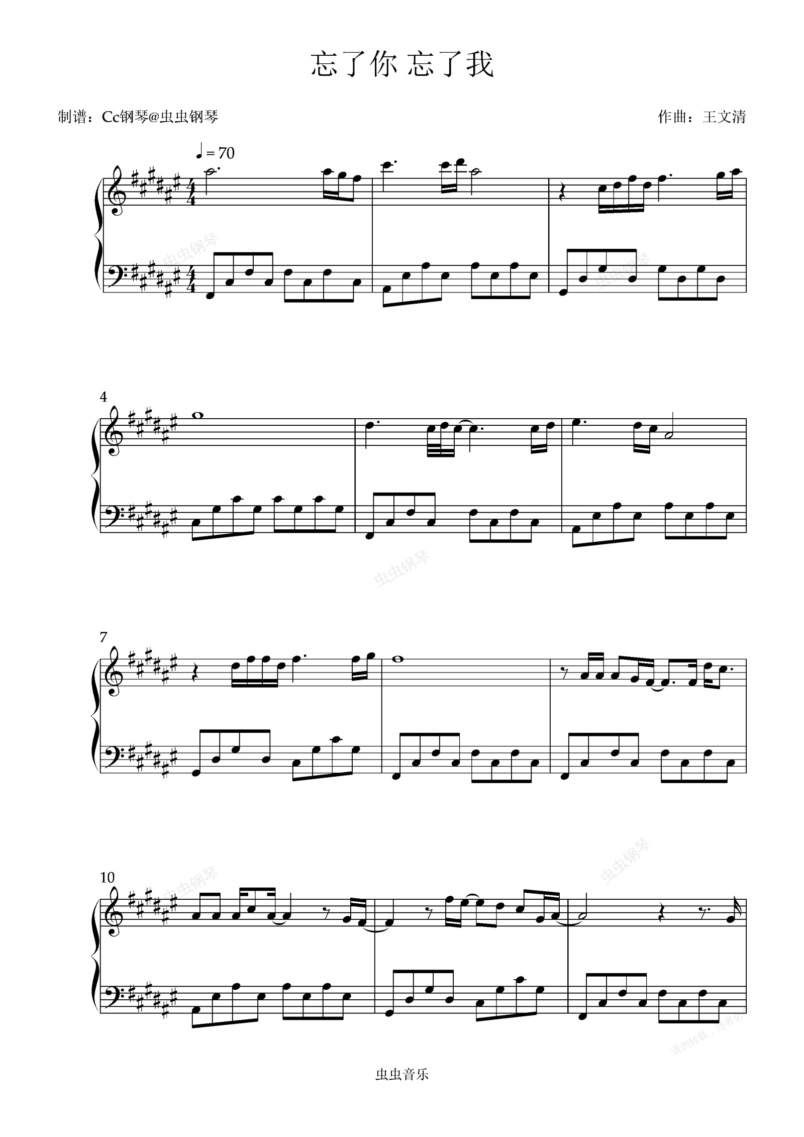钢琴谱:忘了你 忘了我 原调 好听易上手