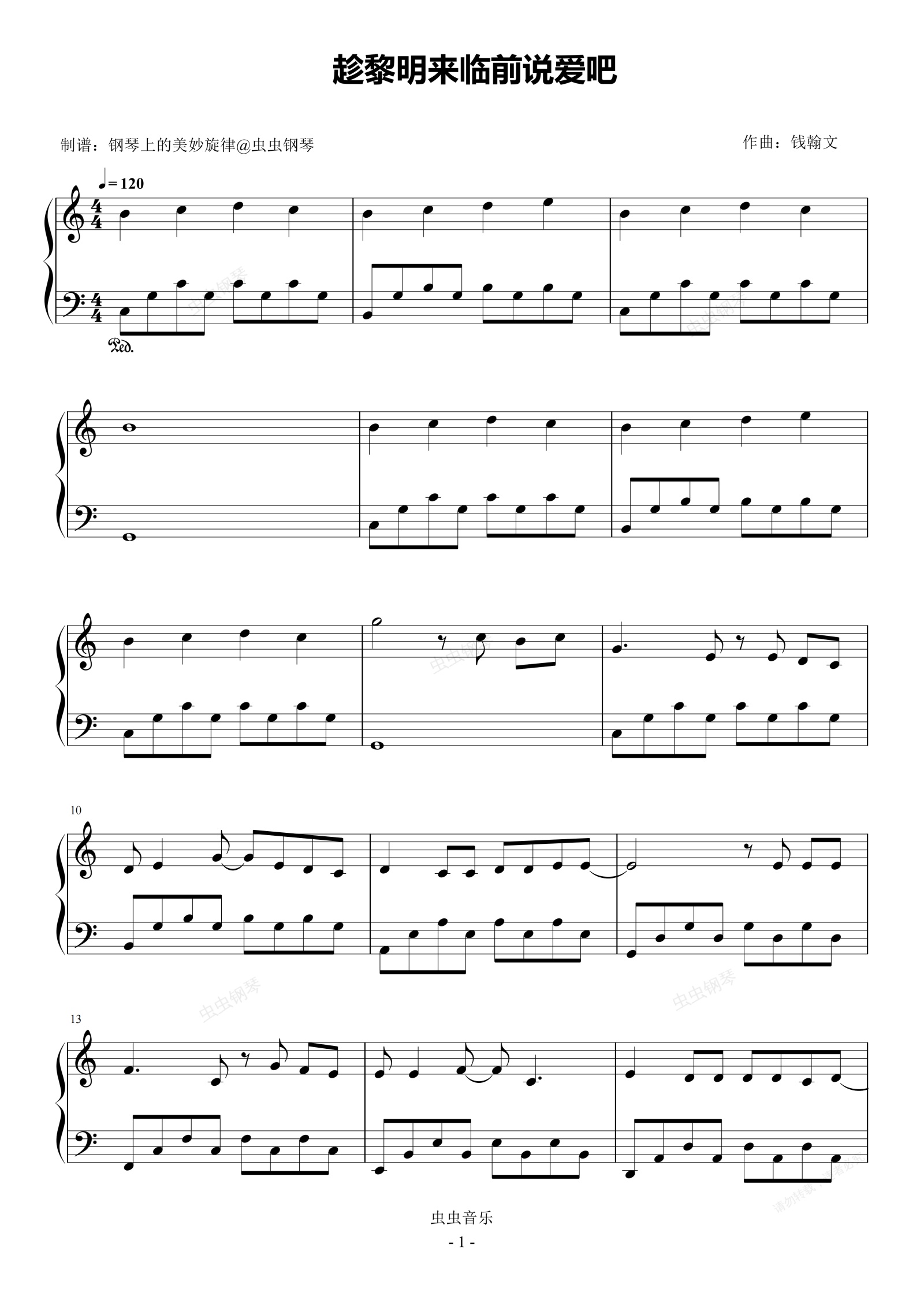 钢琴谱:趁黎明来临前说爱吧 C调简易版