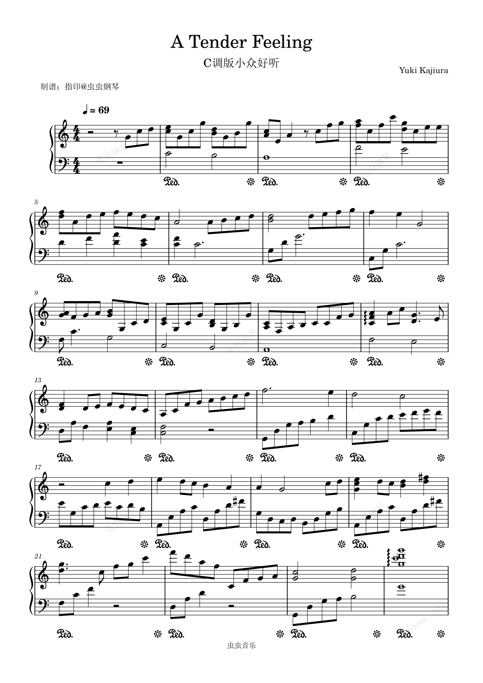 钢琴谱:C调版唯美小众《A Tender Feeling 》