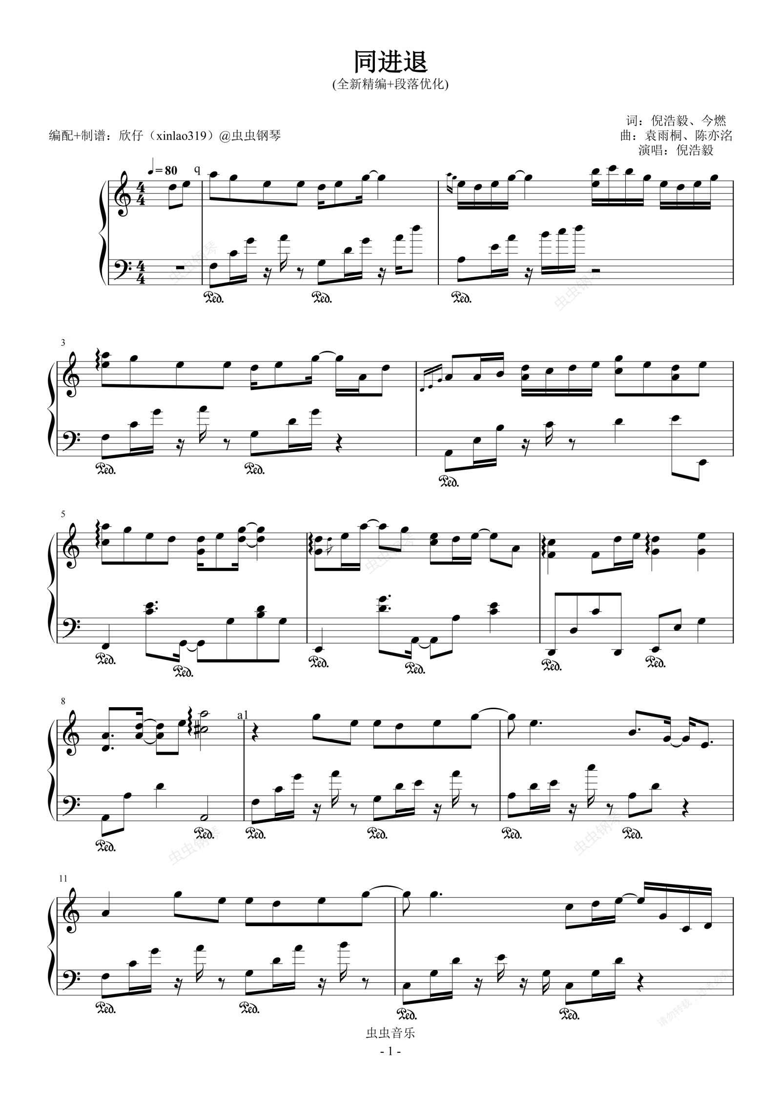 钢琴谱:同进退(C、倪浩毅、段落优化)