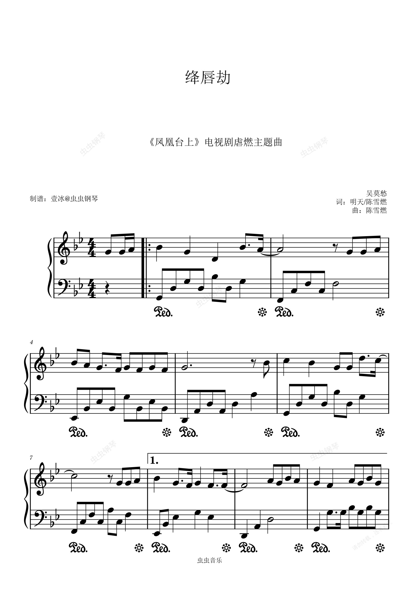 钢琴谱:绛唇劫 《凤凰台上》电视剧虐燃主题曲 原调