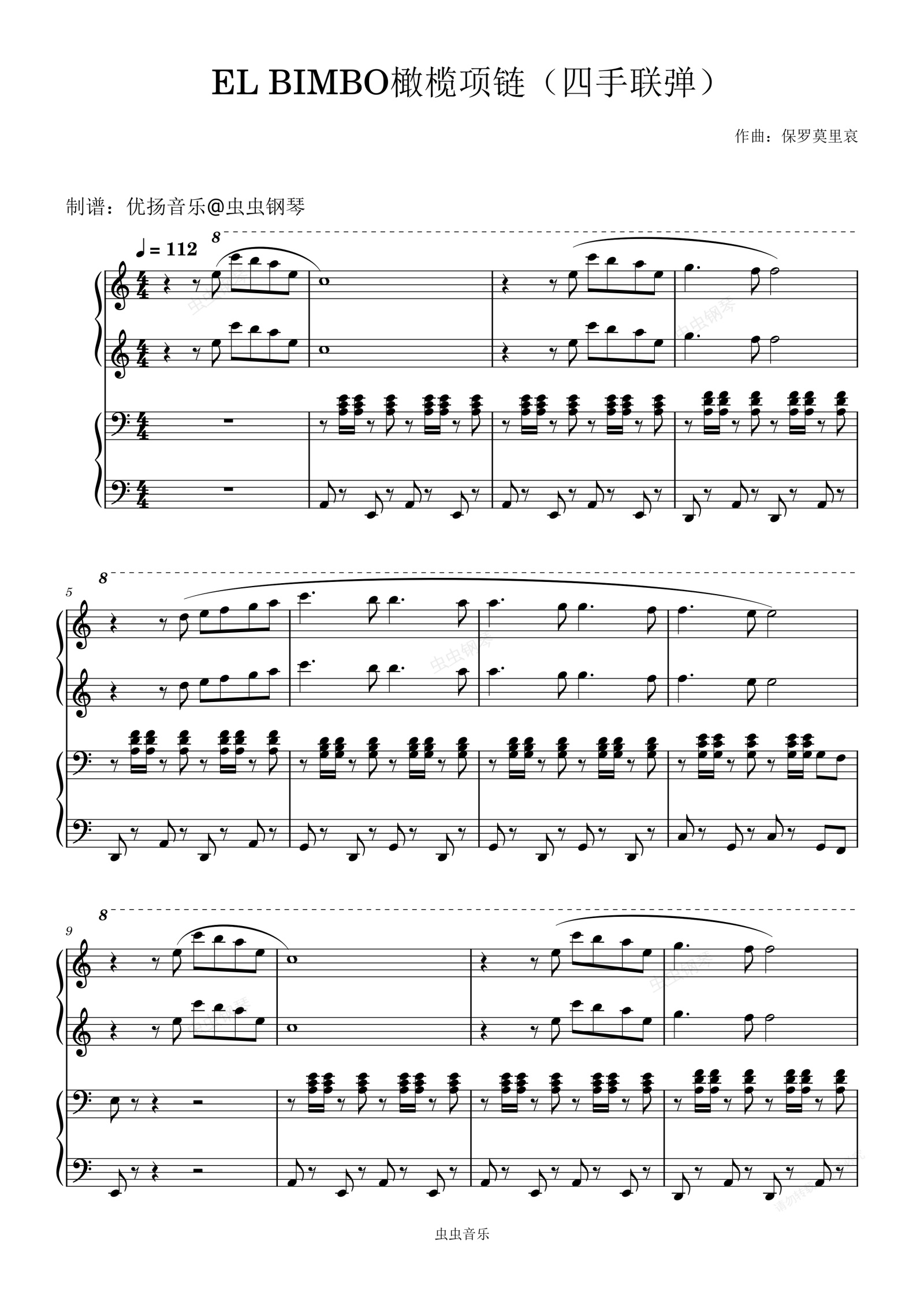钢琴谱:EL BIMBO橄榄项链(四手联弹)