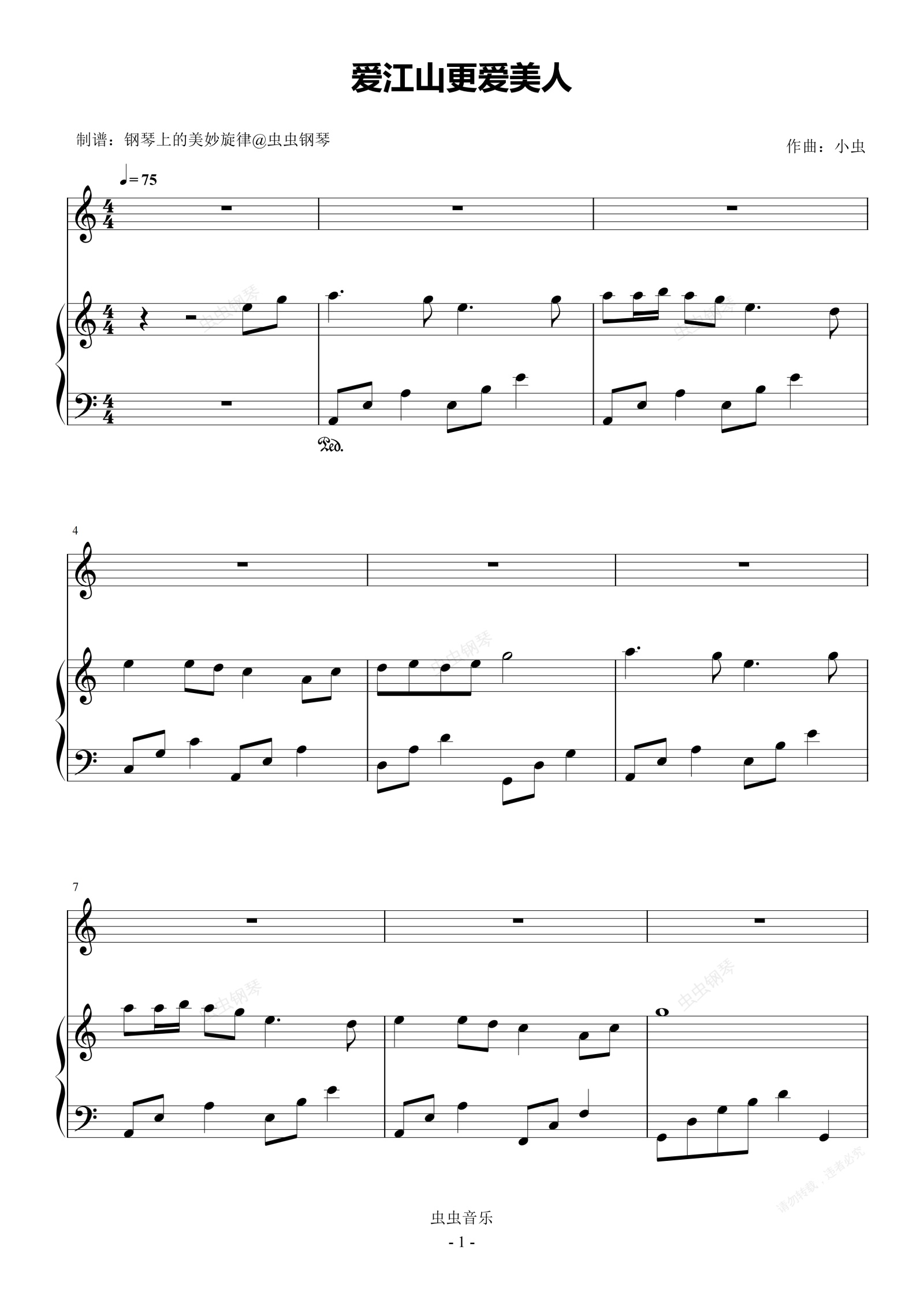 钢琴谱:爱江山更爱美人 C调简易钢琴弹唱伴奏 带歌词 李丽芬