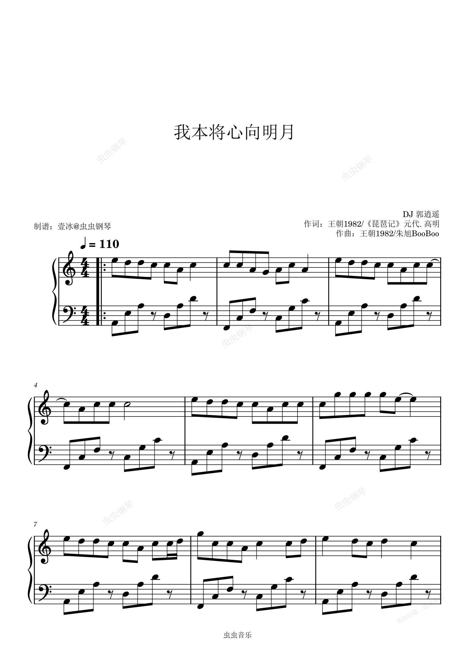钢琴谱:我本将心向明月-DJ 郭逍遥 C调