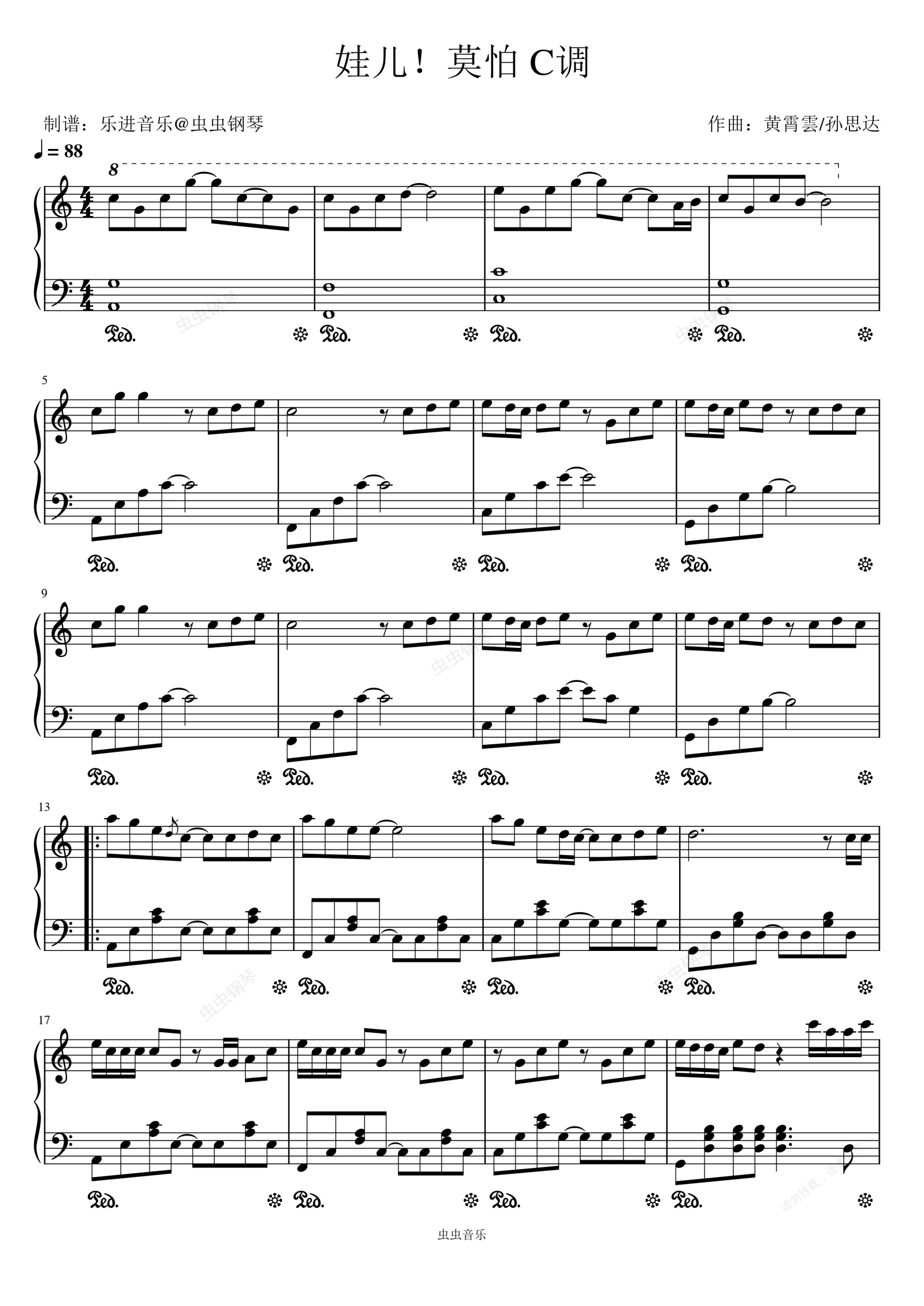 钢琴谱:《娃儿!莫怕》C调