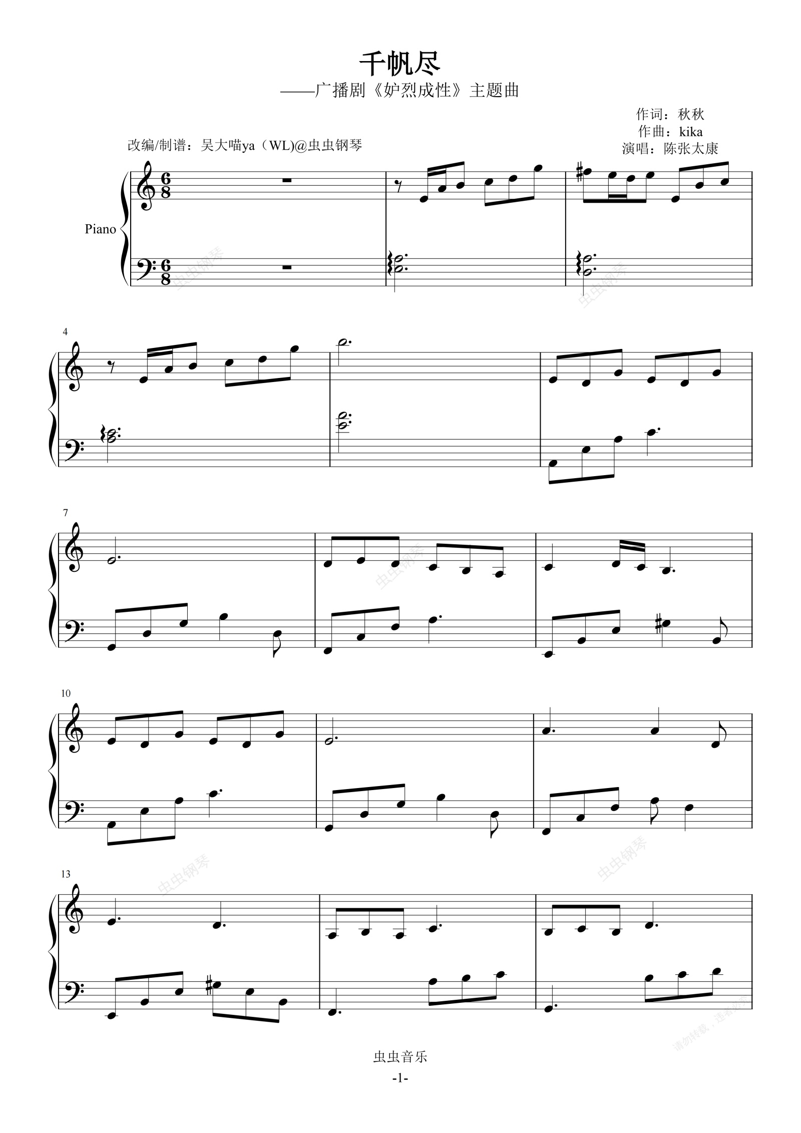 钢琴谱:千帆尽-广播剧《妒烈成性》主题曲 原调