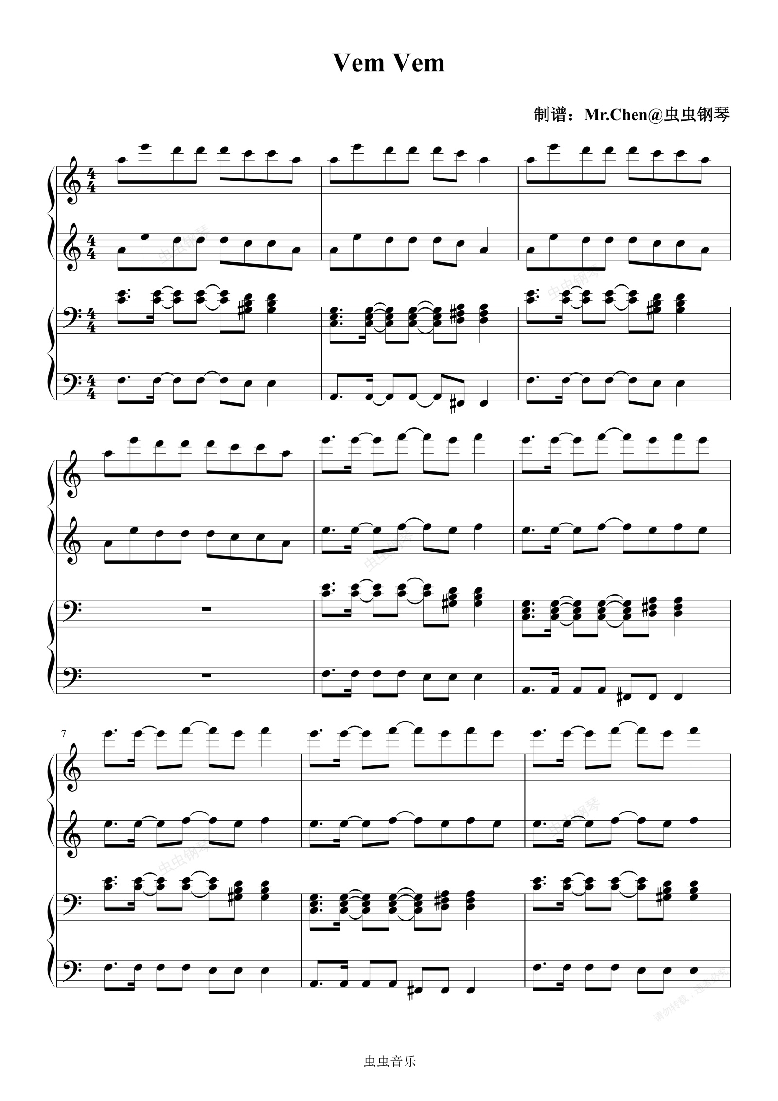 钢琴谱:Vem Vem (四手联弹)-【巴西Funk】