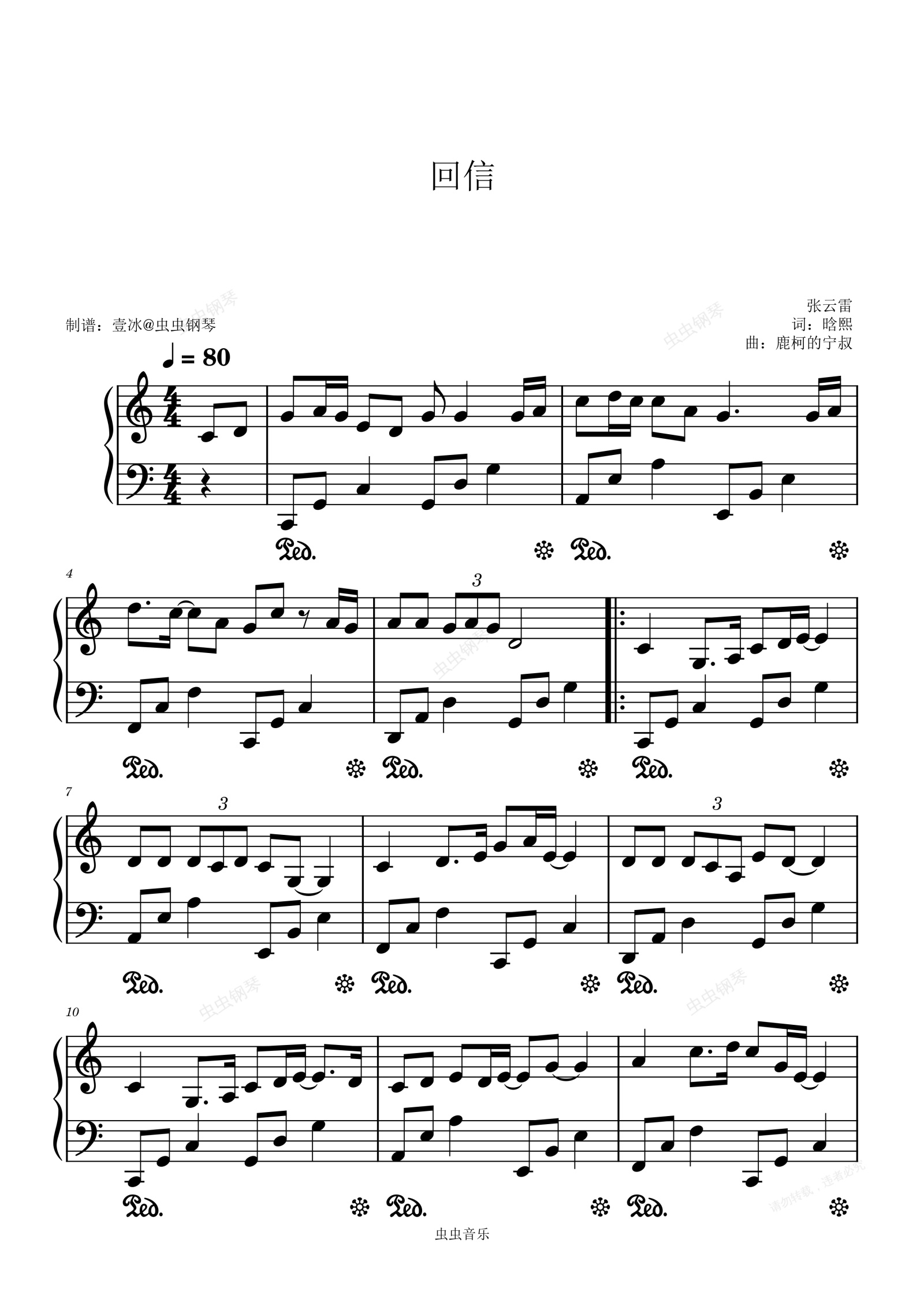 钢琴谱:回信 - 张云雷 C调