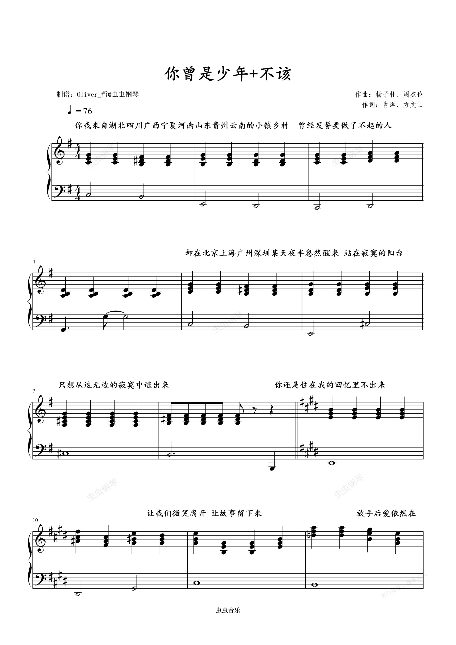 钢琴谱:你曾是少年+不该 原调弹唱谱 经典怀旧 好听易弹