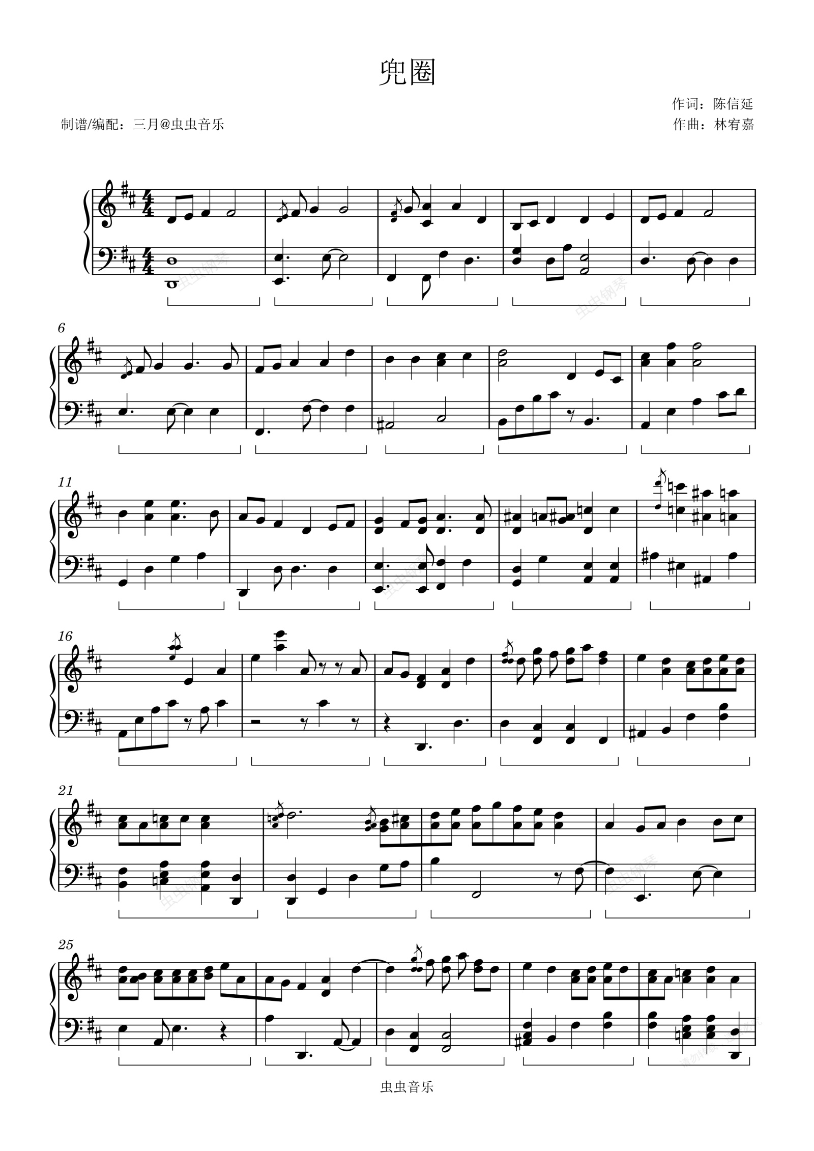 钢琴谱:兜圈 完美D调弹唱/伴奏