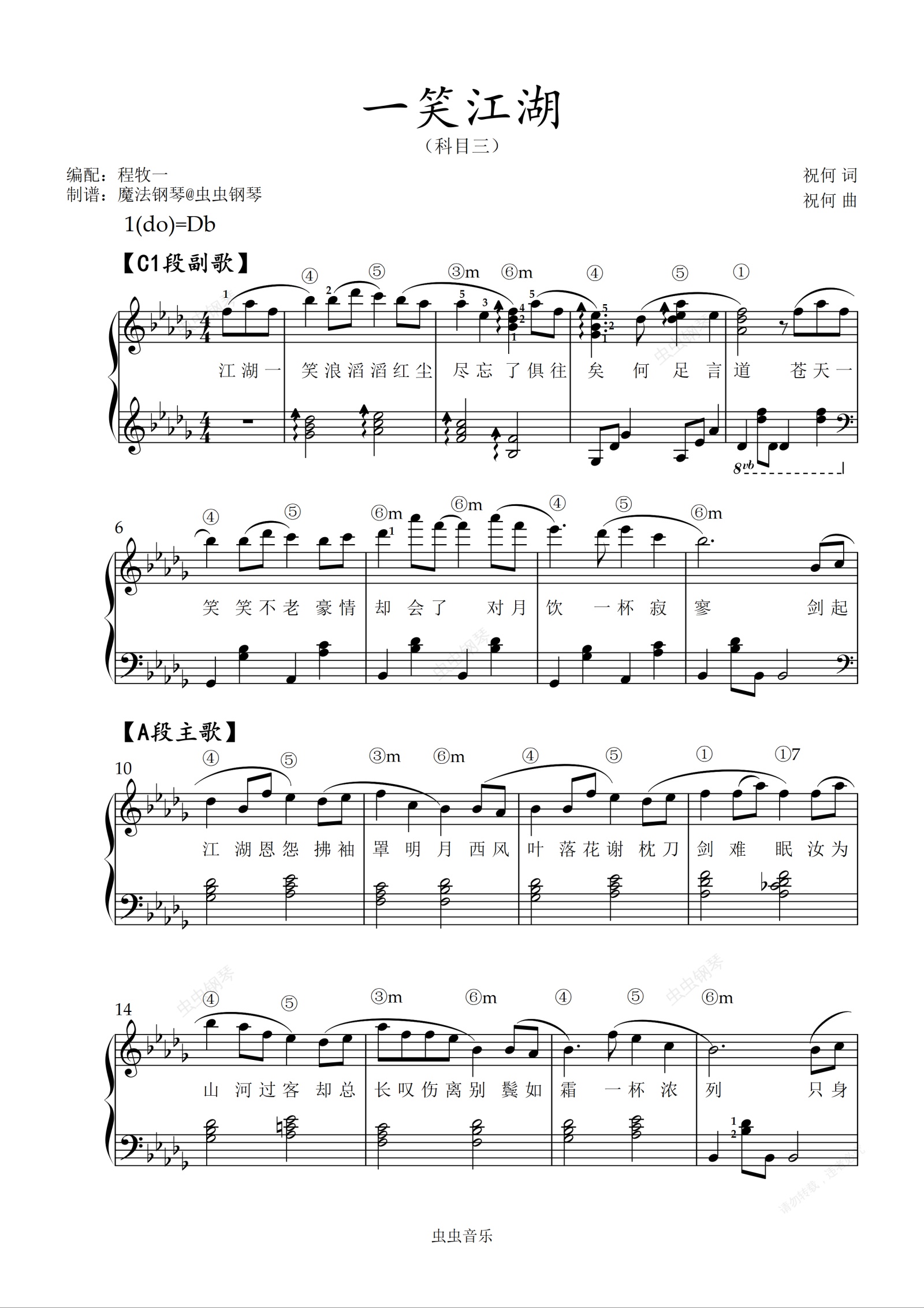 钢琴谱:【魔法钢琴】一笑江湖(科目三)