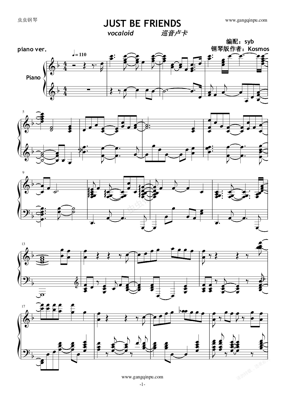 钢琴谱:巡音 Just be friends