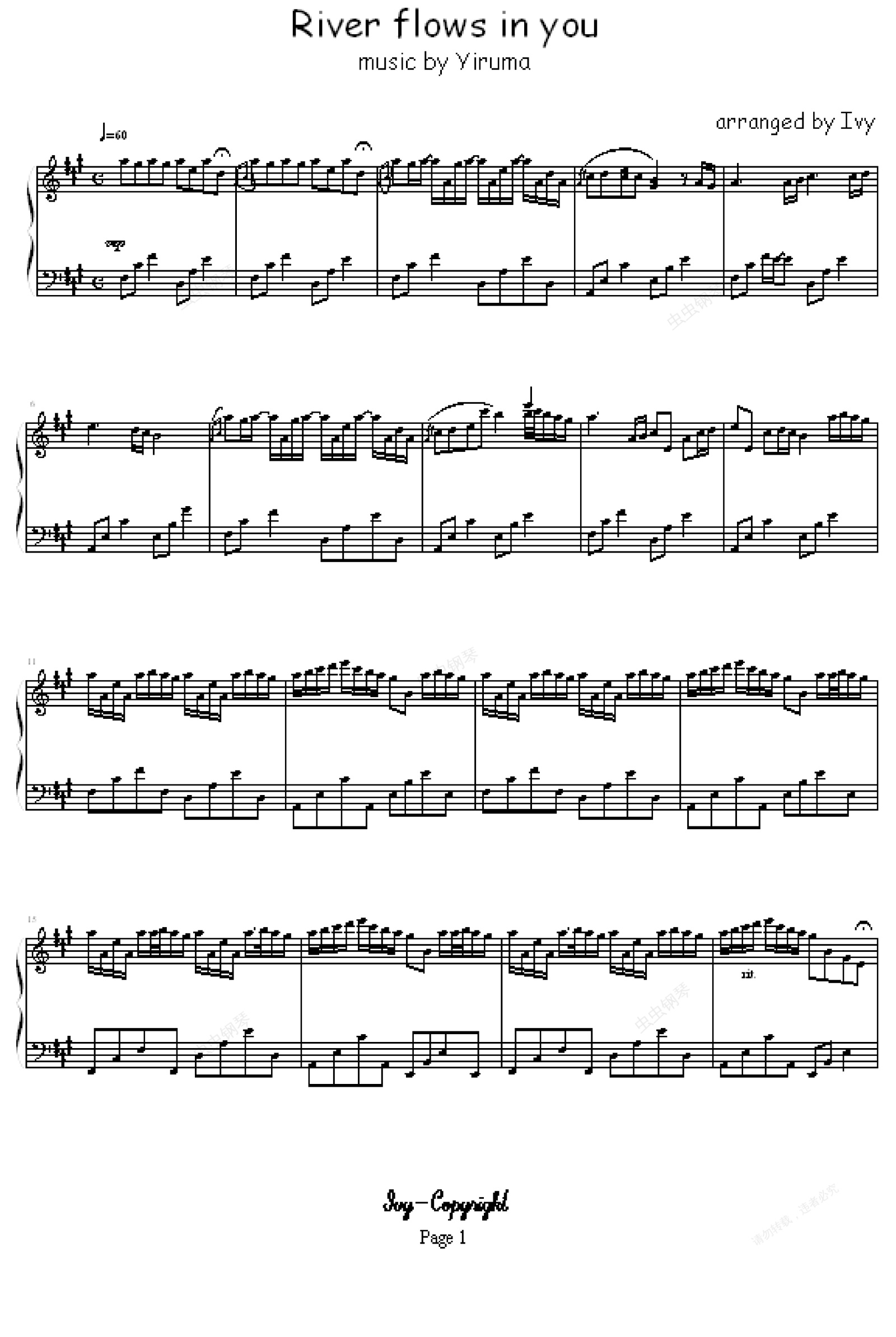 钢琴谱:River flows in you