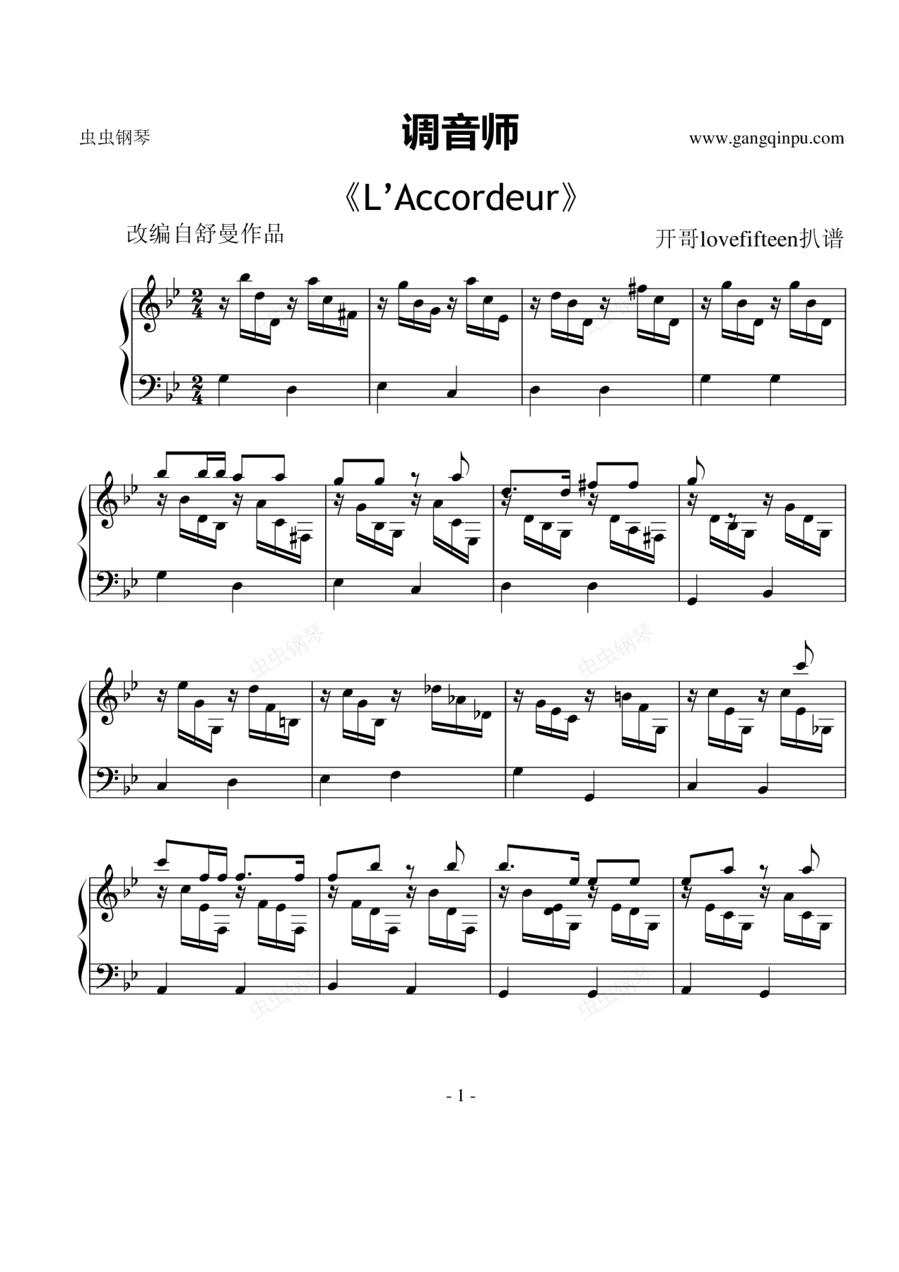 钢琴谱:调音师 L’Accordeur