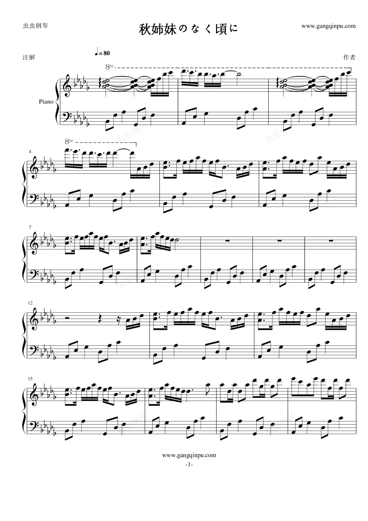 钢琴谱:【寒蝉X东方】秋姉妹のなく頃に