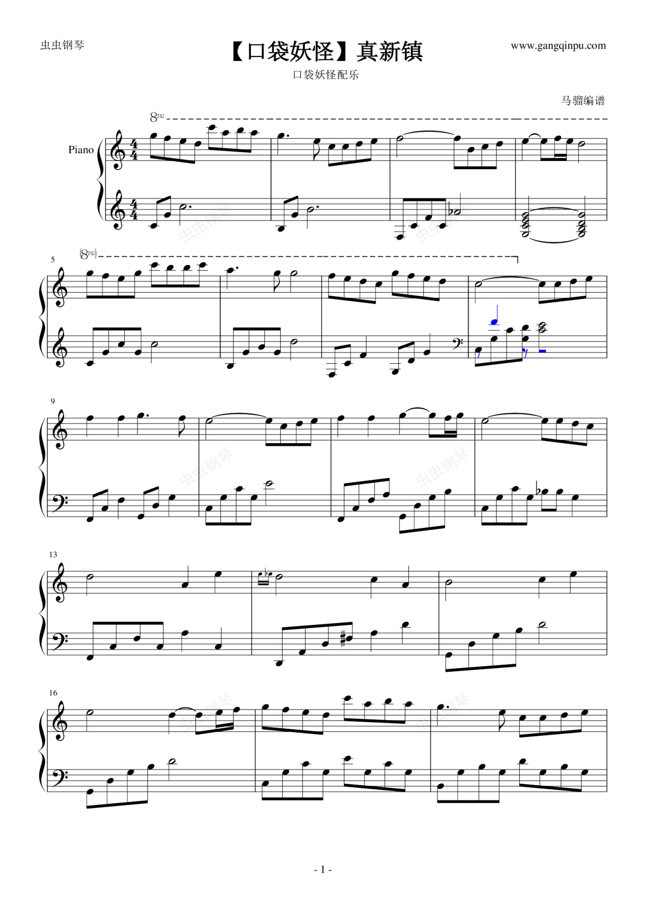 钢琴谱:【口袋妖怪】真新镇 - 红黄蓝绿家的城镇