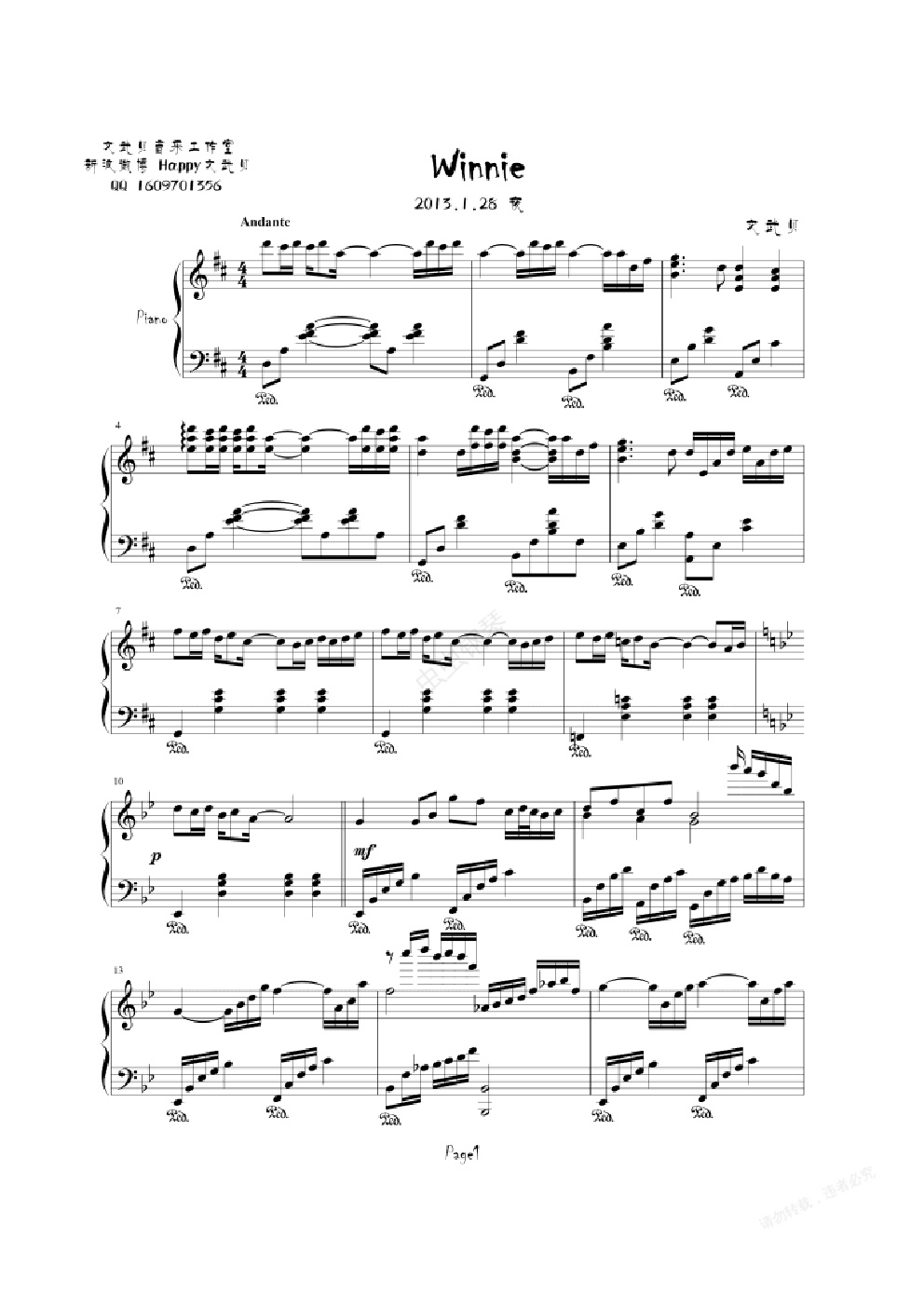 钢琴谱:Winnie