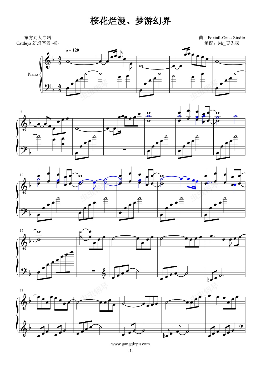 钢琴谱:【东方】桜花烂漫、梦游幻界