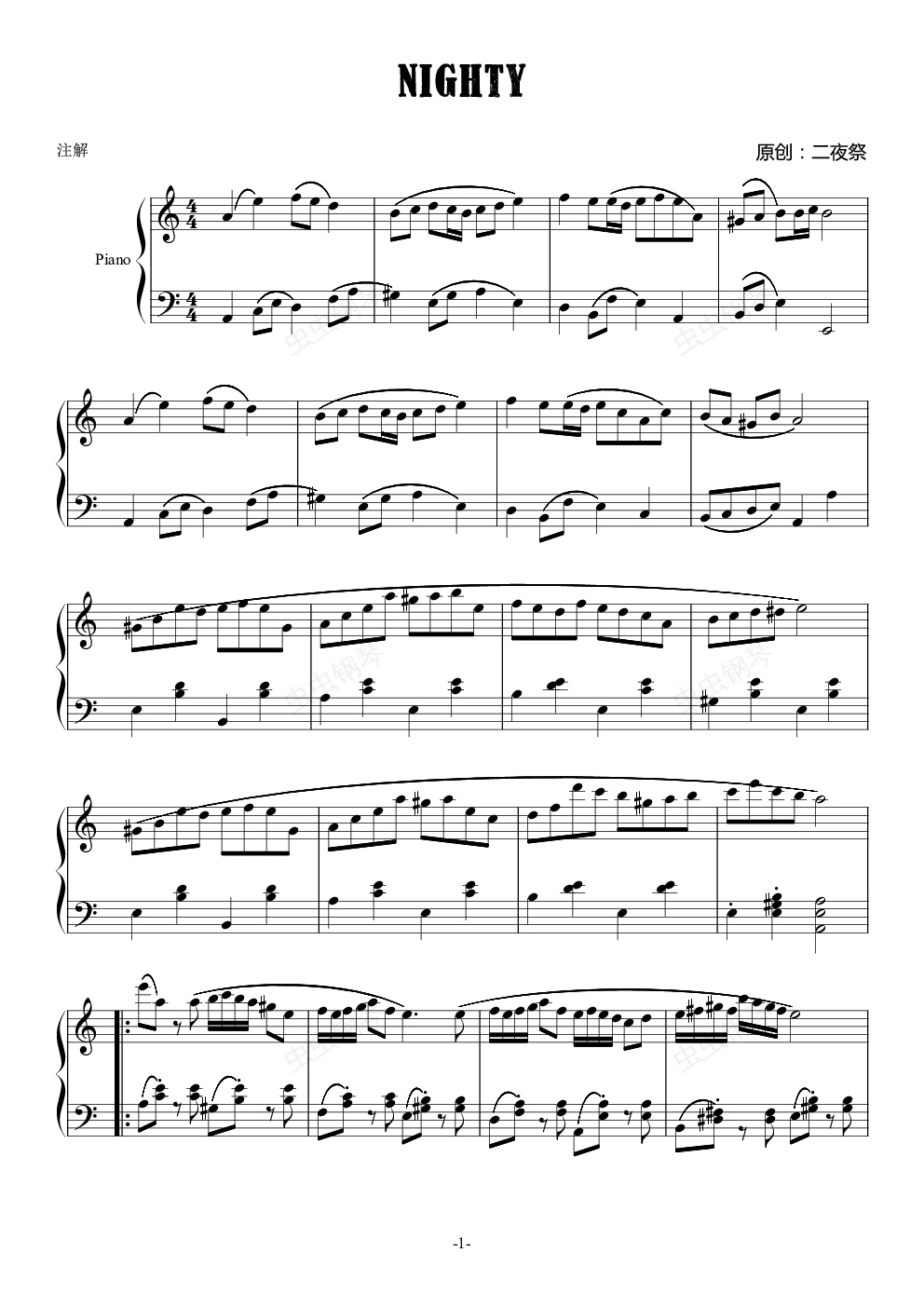 钢琴谱:NIGHTY
