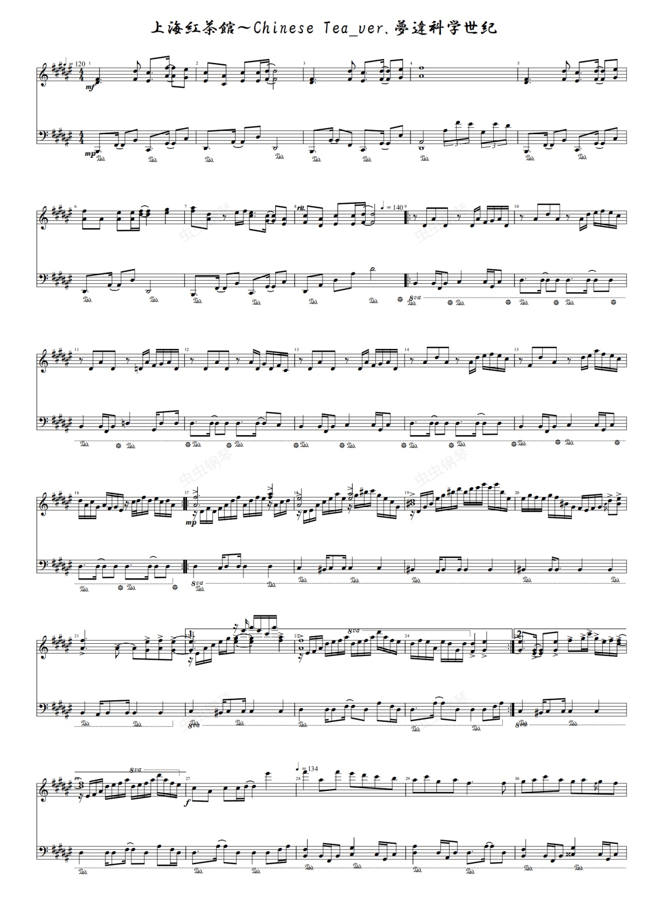 钢琴谱:【东方project】上海红茶馆 ~ Chinese Tea(梦违科学世纪ver.)