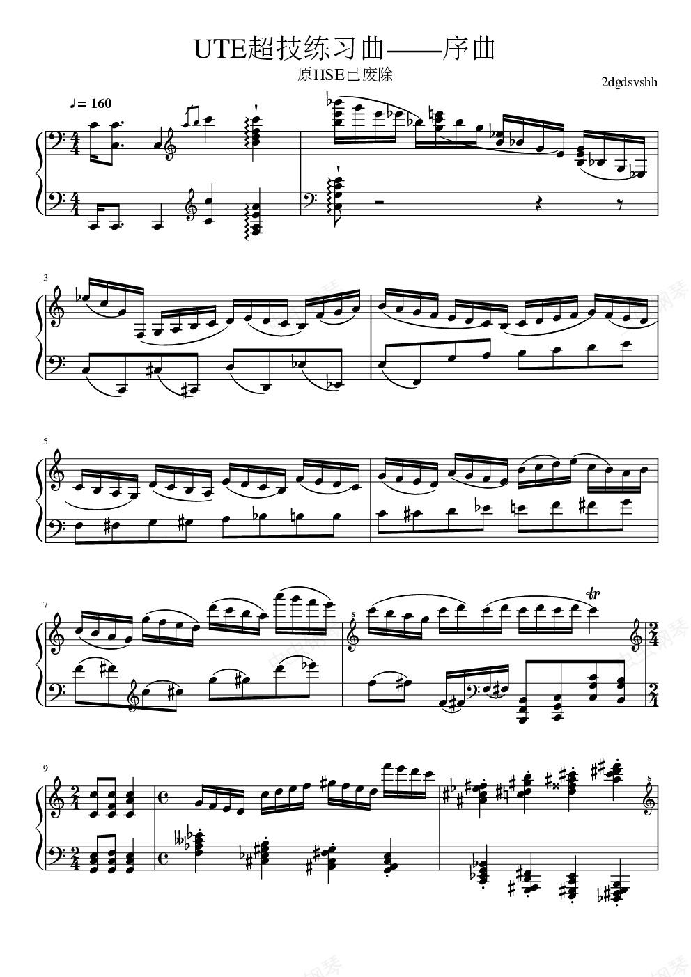 钢琴谱:UTE超技练习曲——前奏