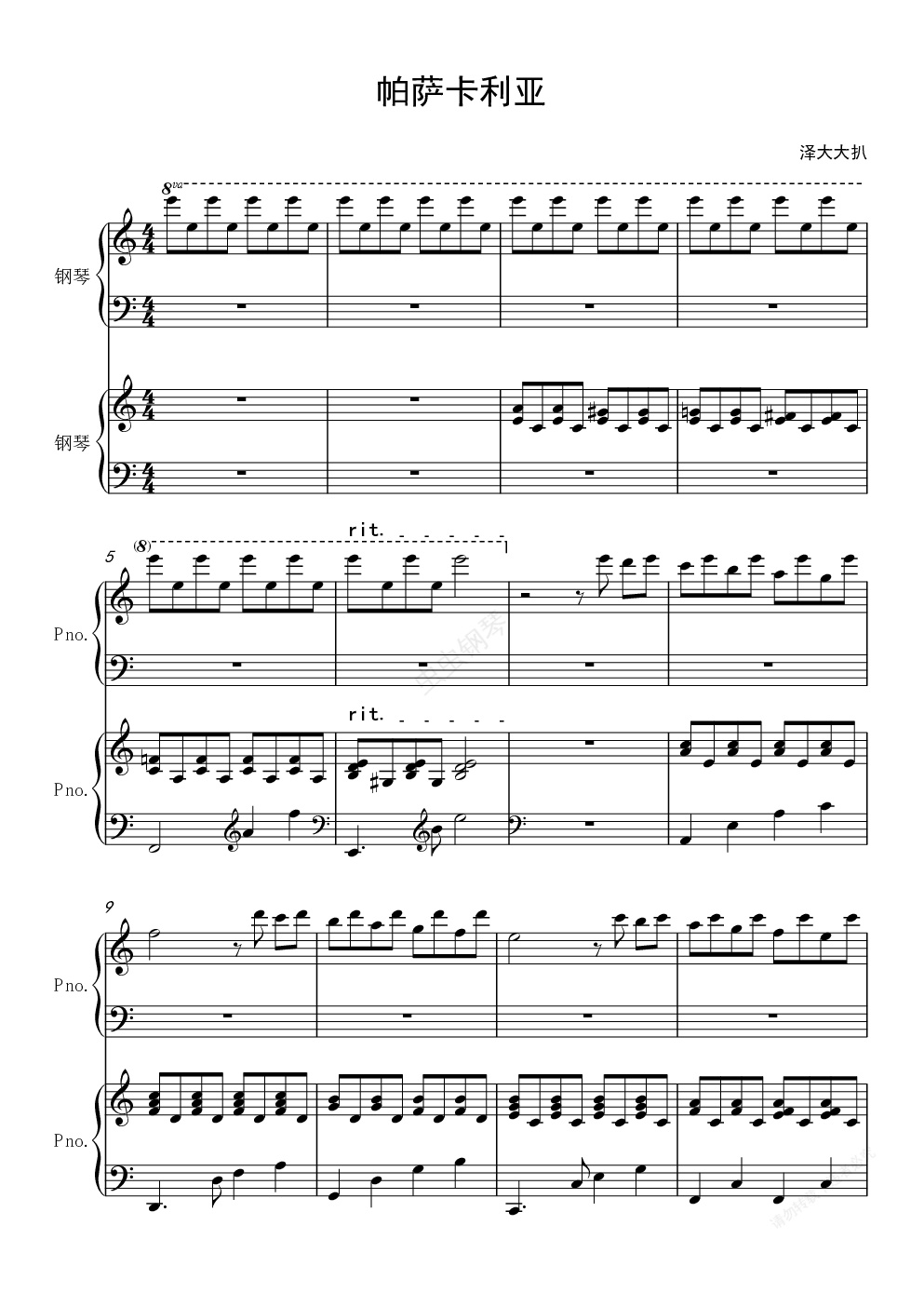 钢琴谱:帕萨卡利亚(母女增强版)