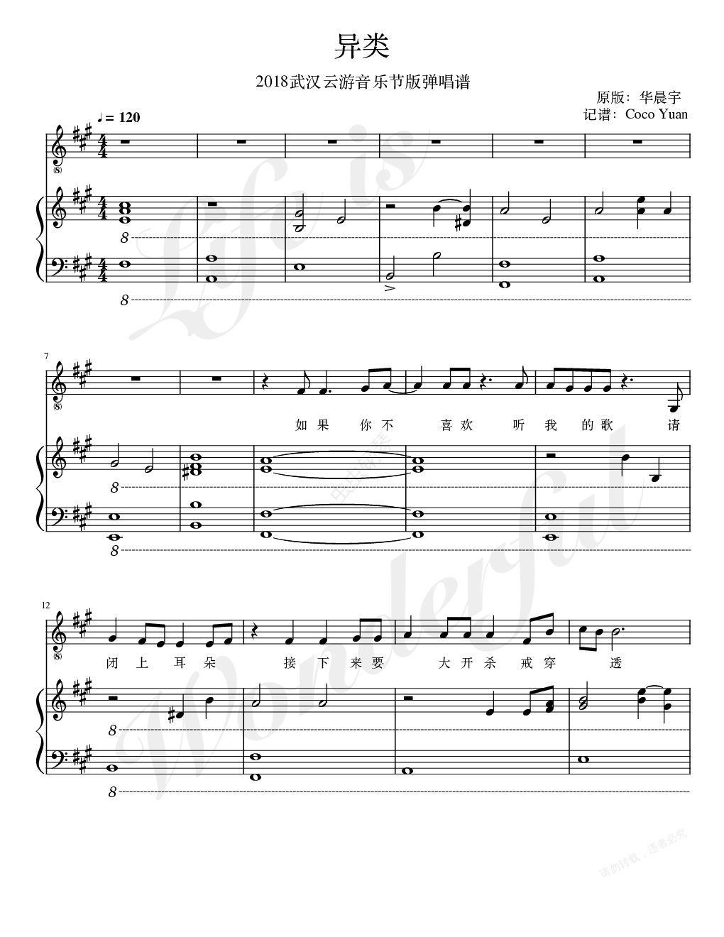 钢琴谱:异类 音乐节版弹唱谱