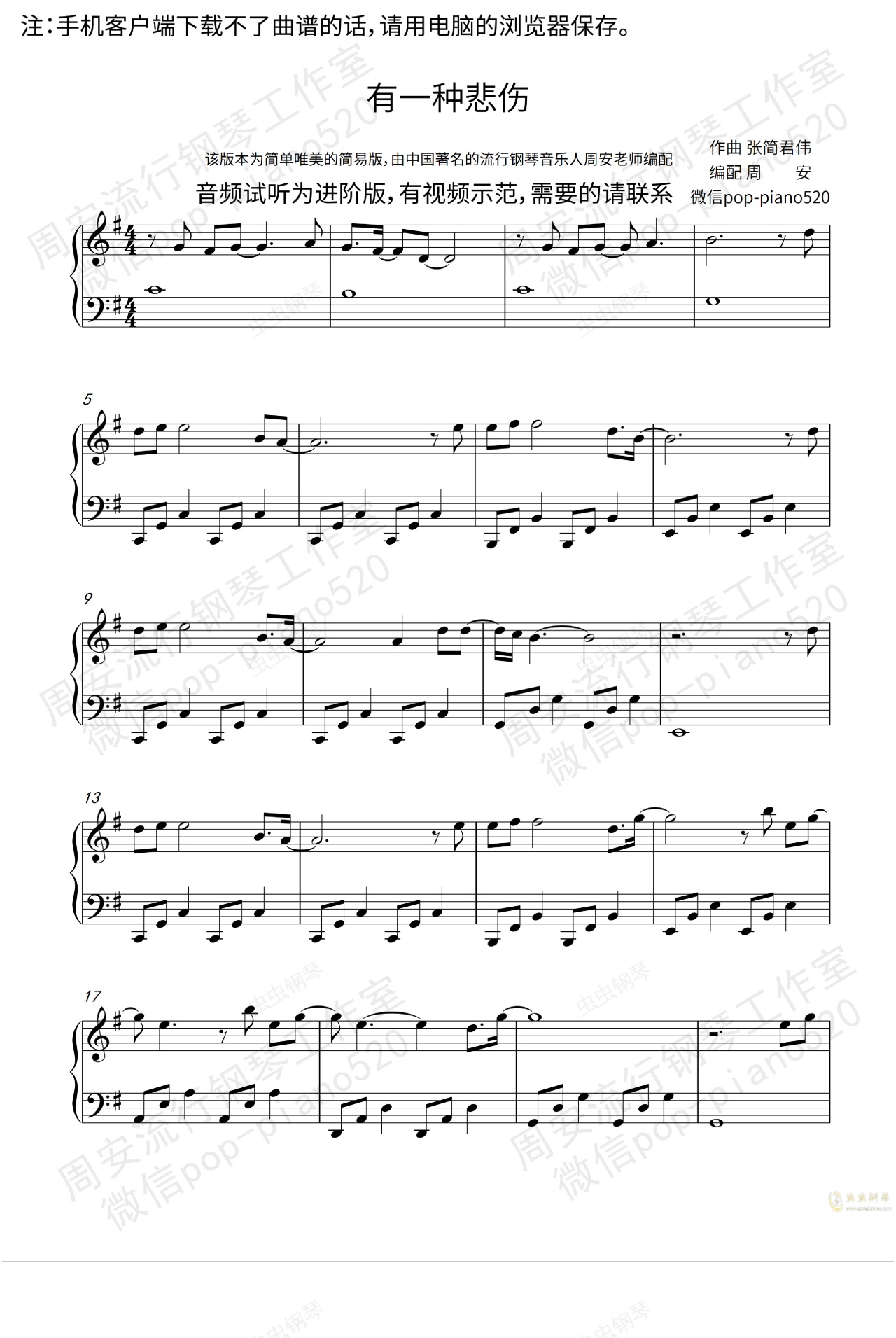 钢琴谱:《有一种悲伤》唯美钢琴版(周安老师)