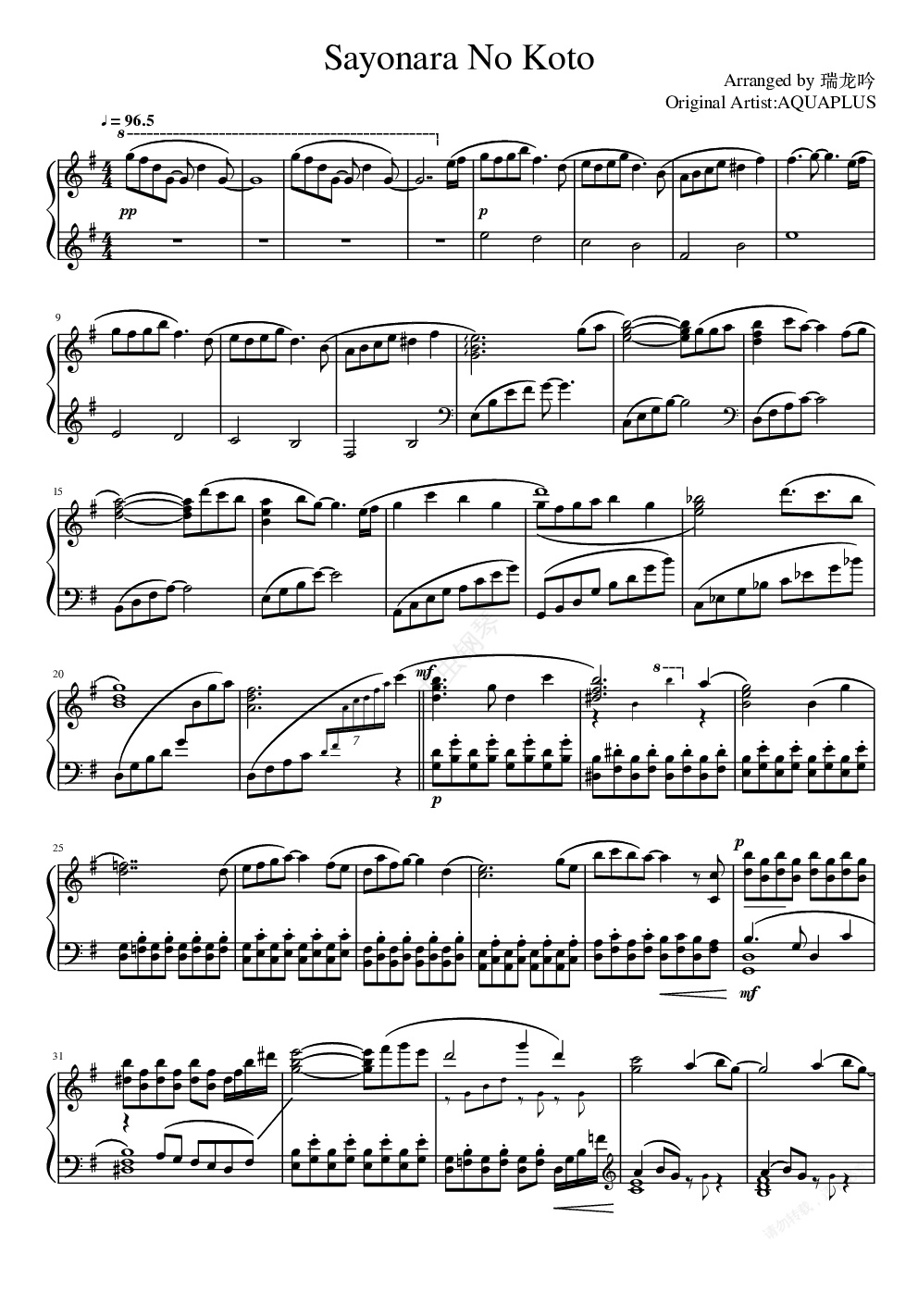 钢琴谱:白色相簿2 ed さよならのこと(Sayonara No Koto )