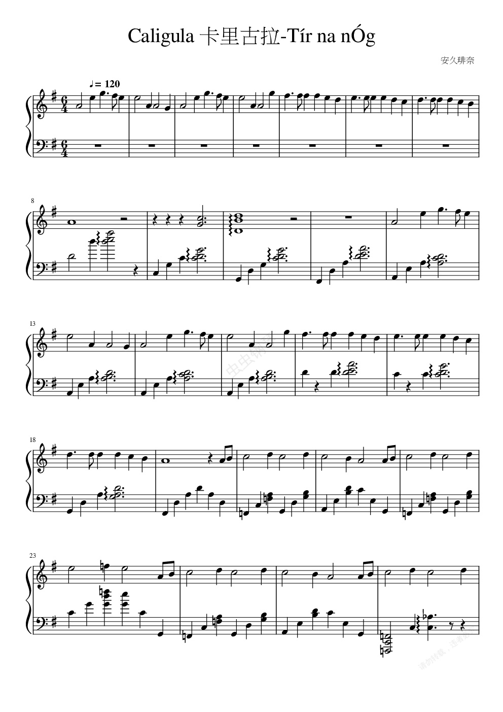 钢琴谱:【卡里古拉】Tír na nóg 黑化神曲