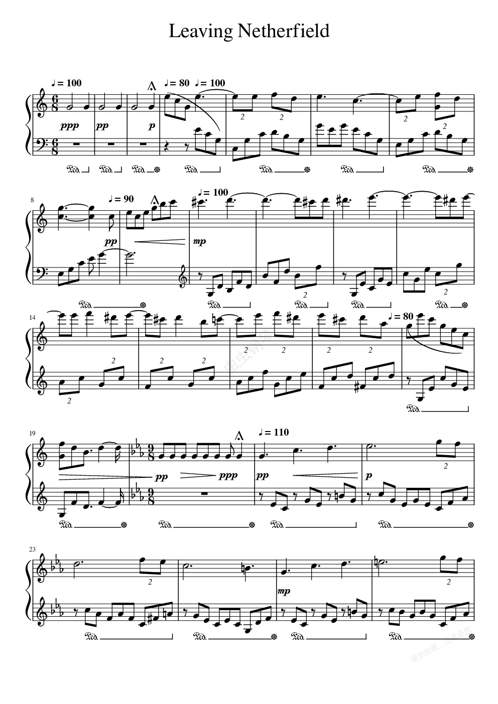 钢琴谱:Leaving Netherfield-《傲慢与偏见》插曲