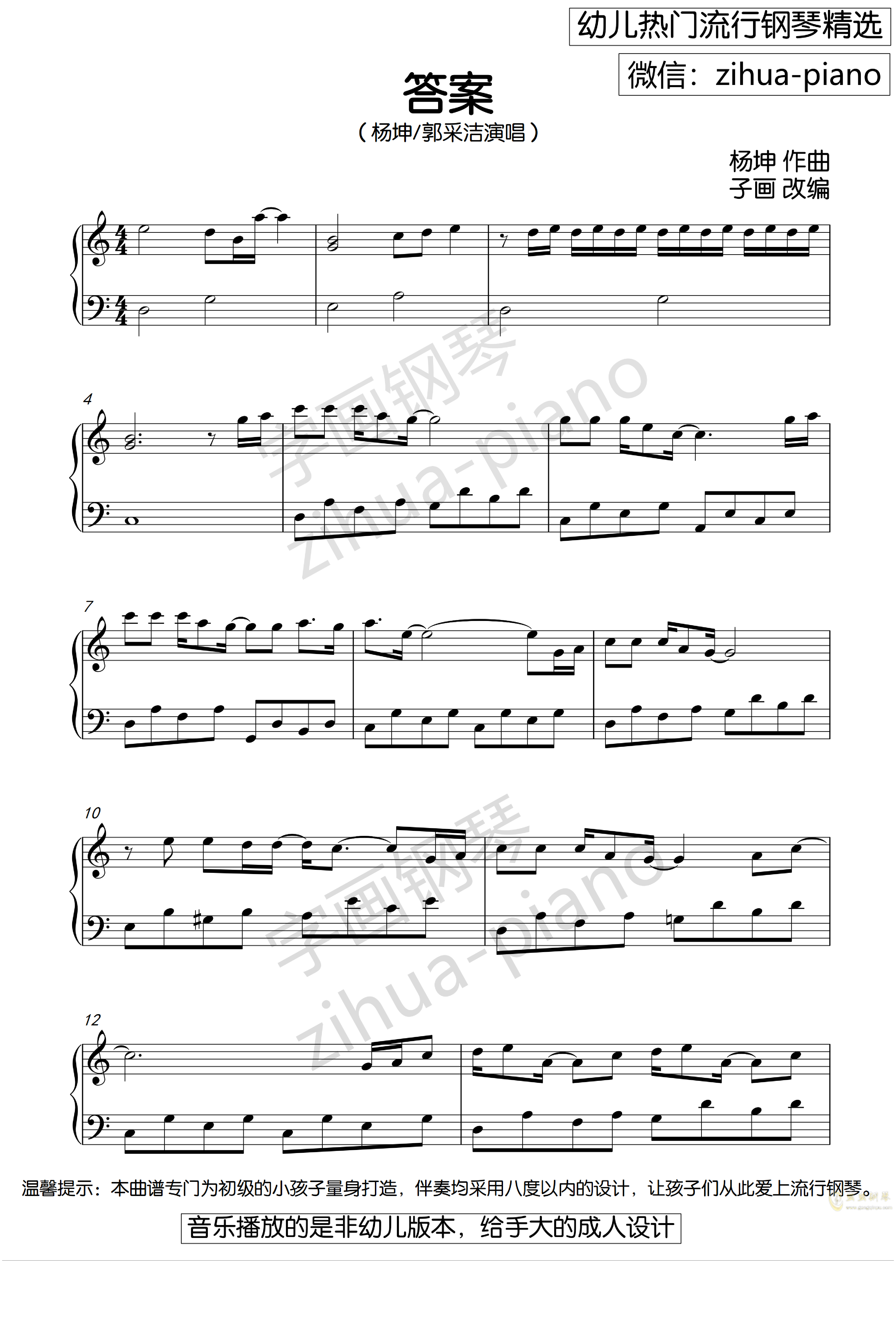 曲谱有【幼儿版本】与【非幼儿版本】,