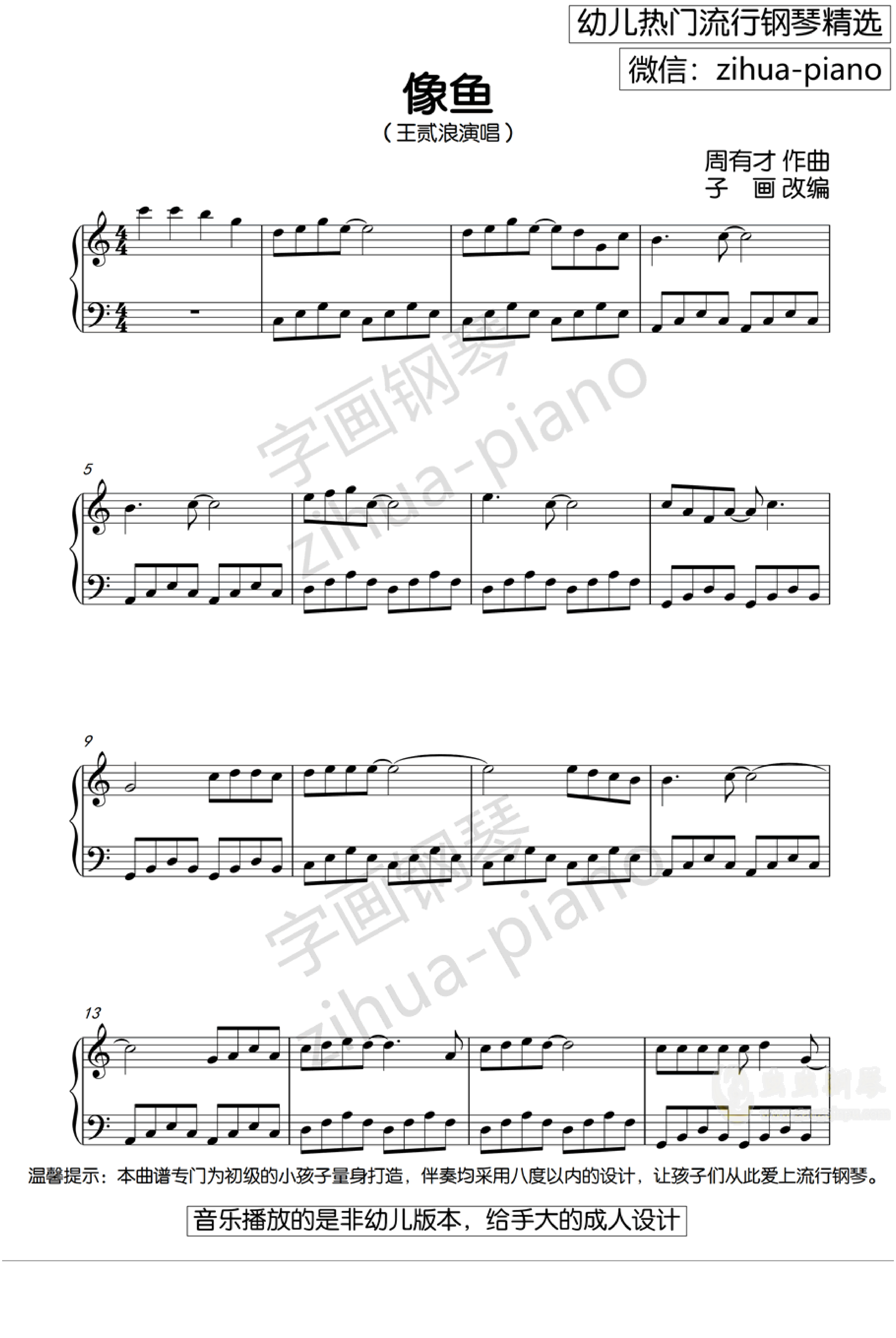 曲谱有【幼儿版本】与【非幼儿版本】,